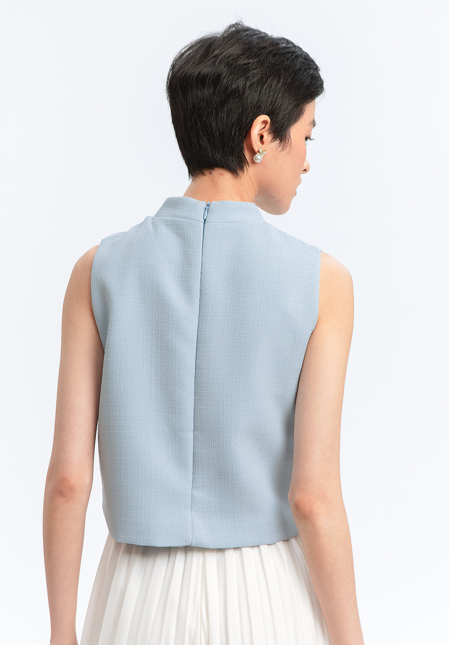 - Concealed back zipper for closure