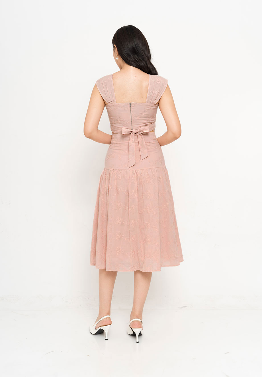 - Concealed back zipper for closure