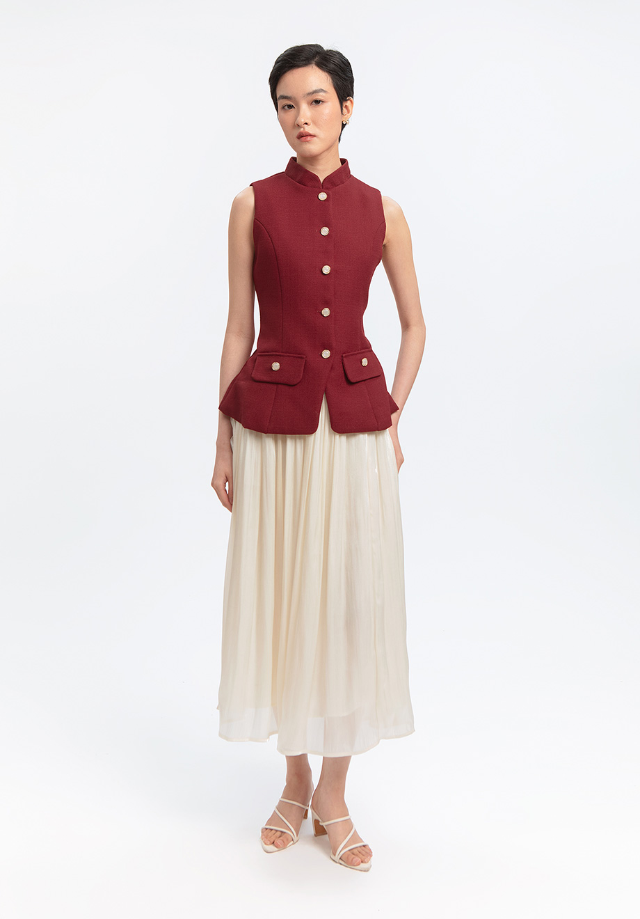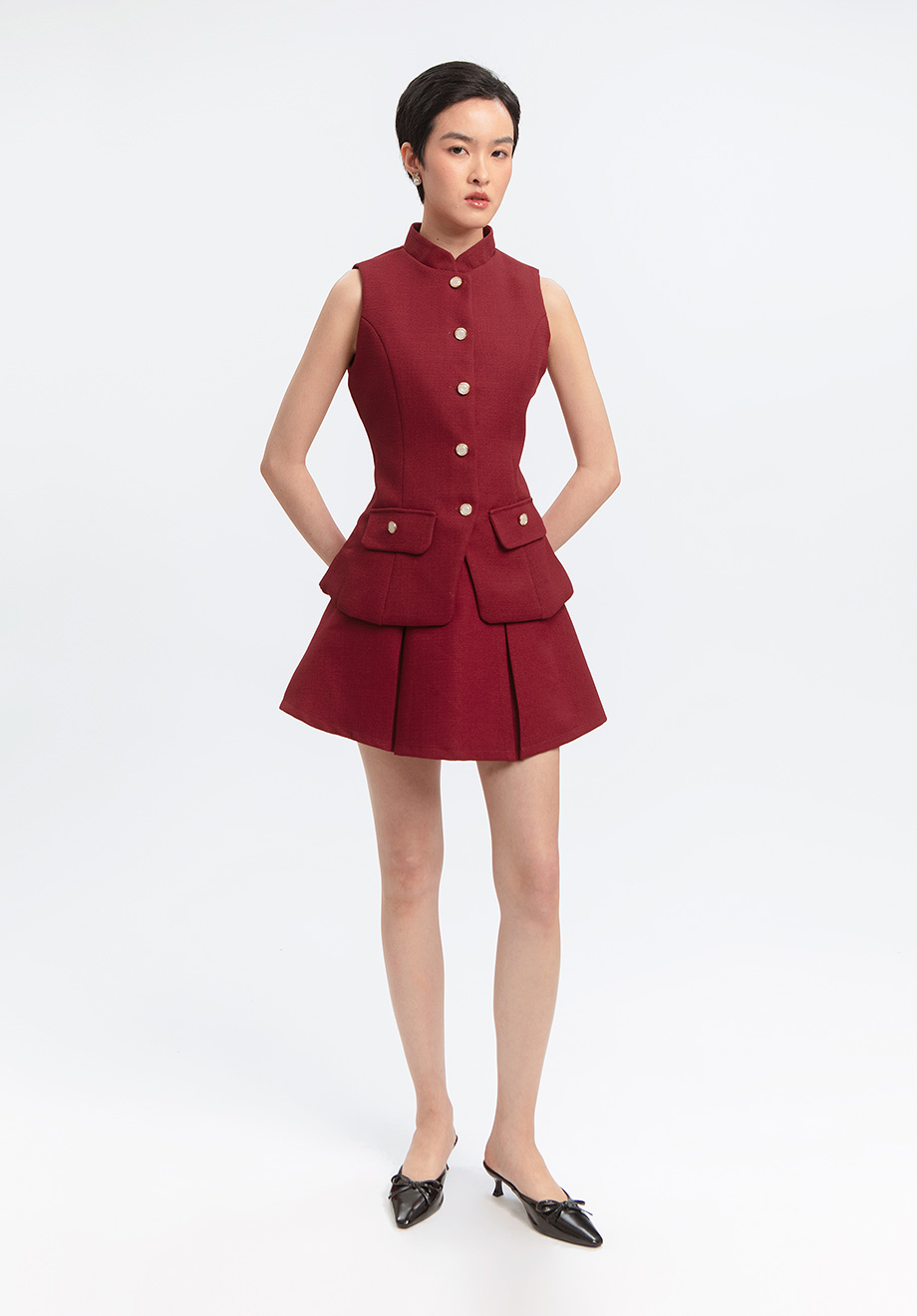 Model is 174 cm; weight: 50 kg & wears Small size