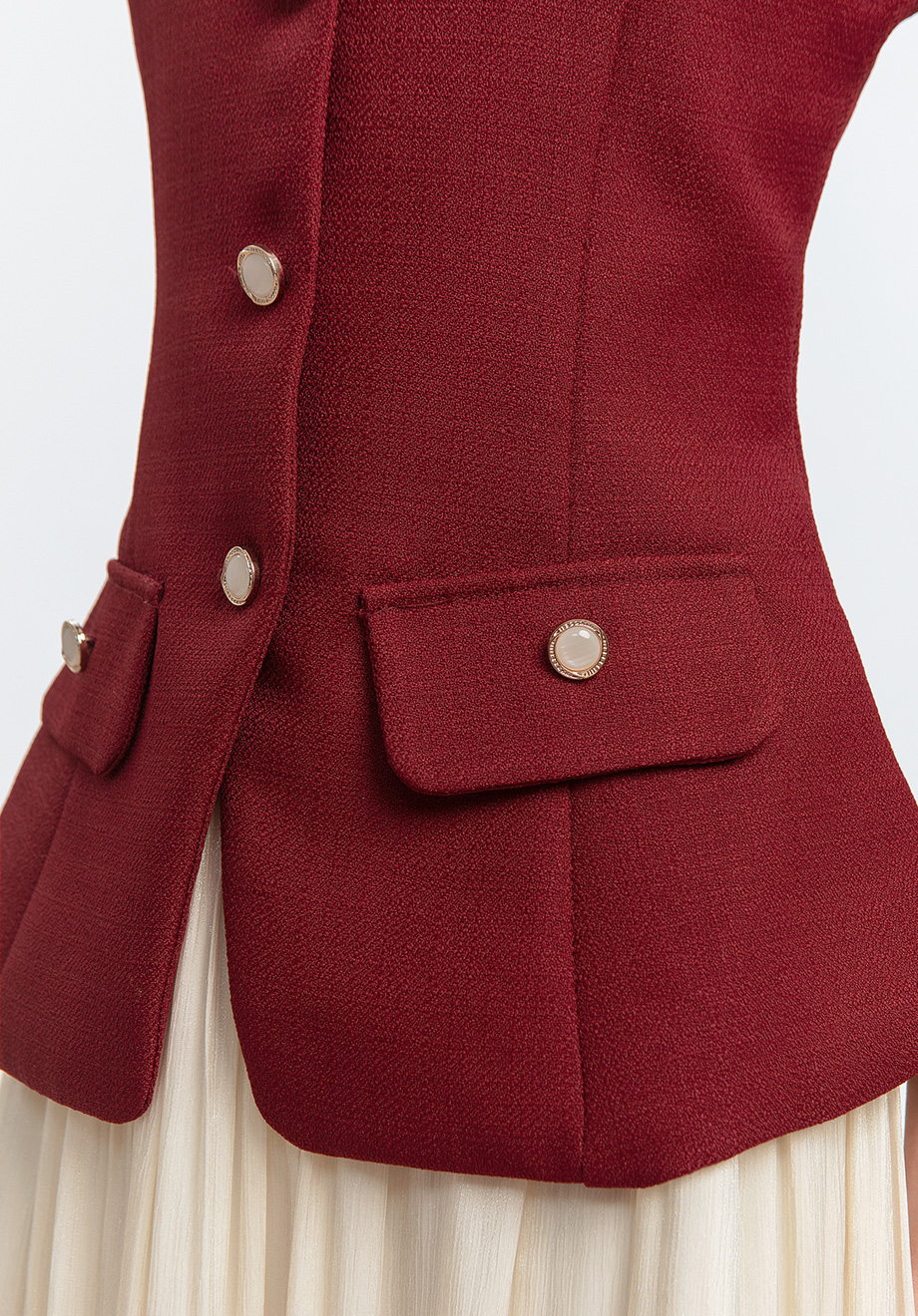 - Functional front buttons for closure