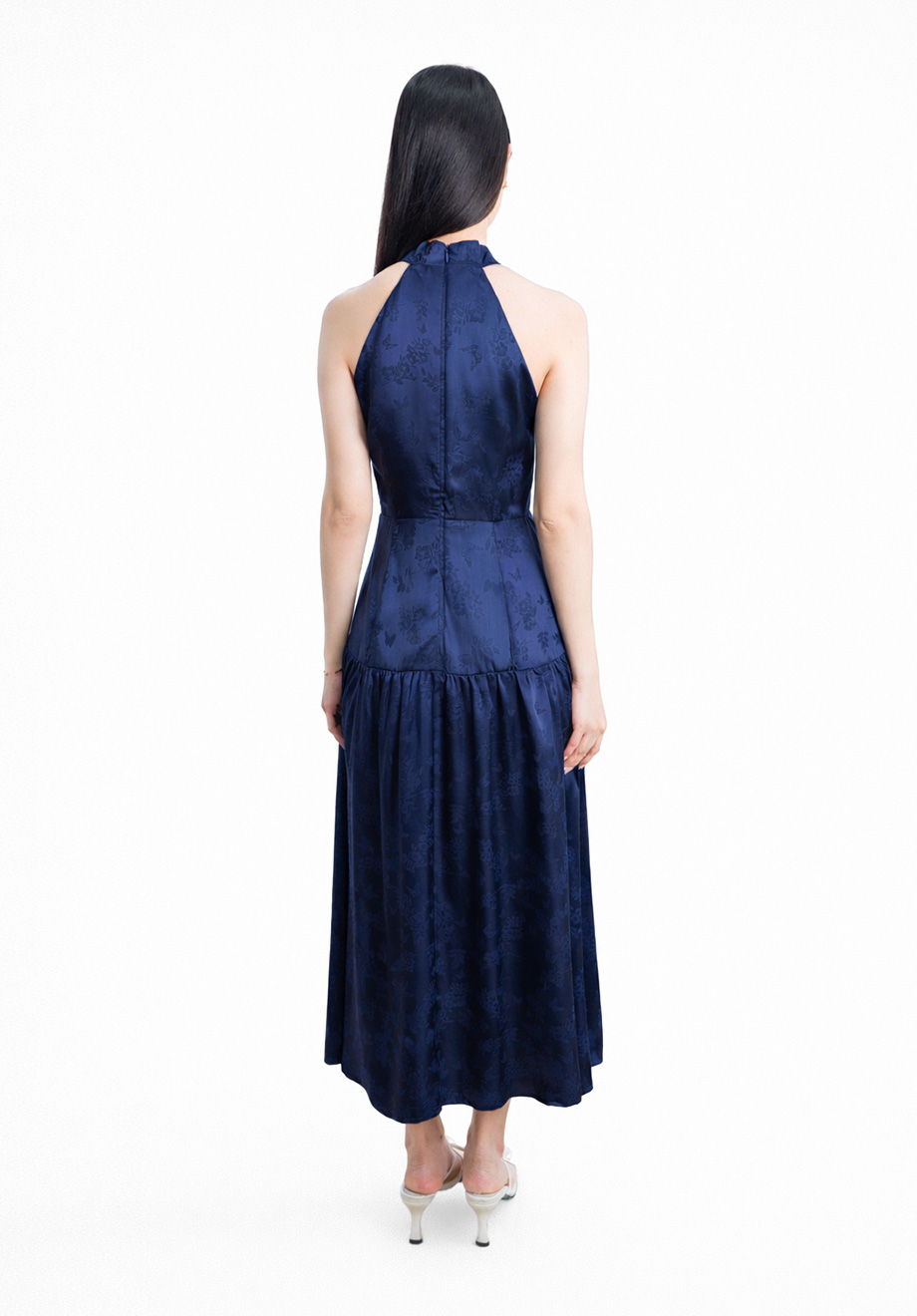 - Concealed back zipper for closure