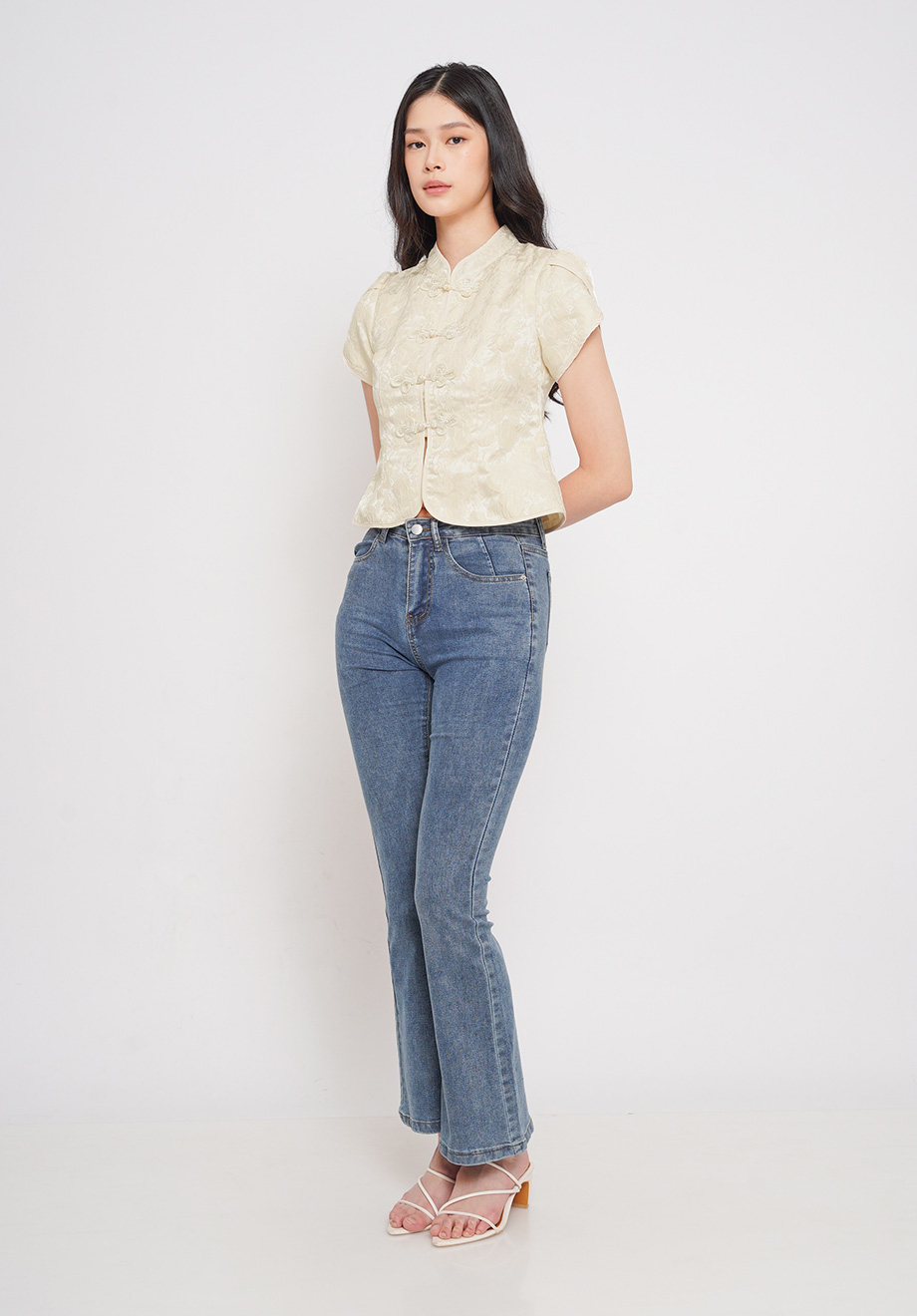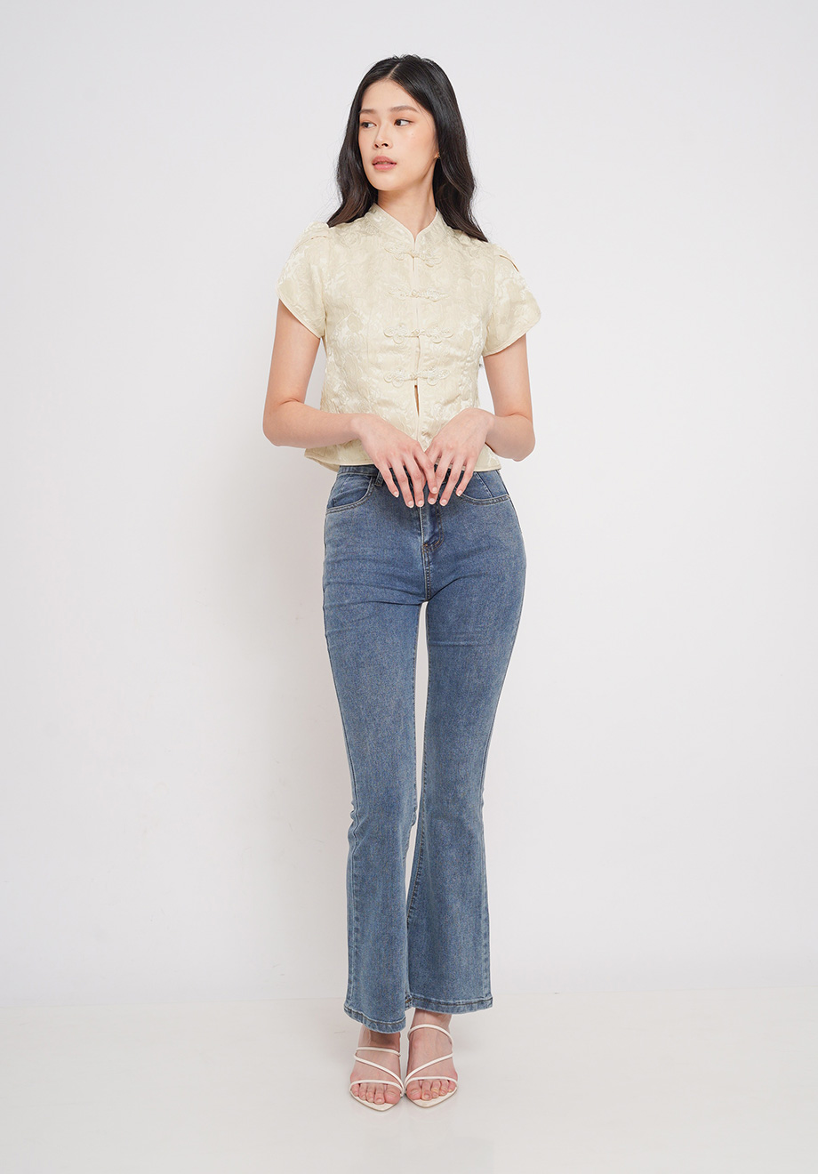 Model is 174 cm; weight: 50 kg & wears Small size