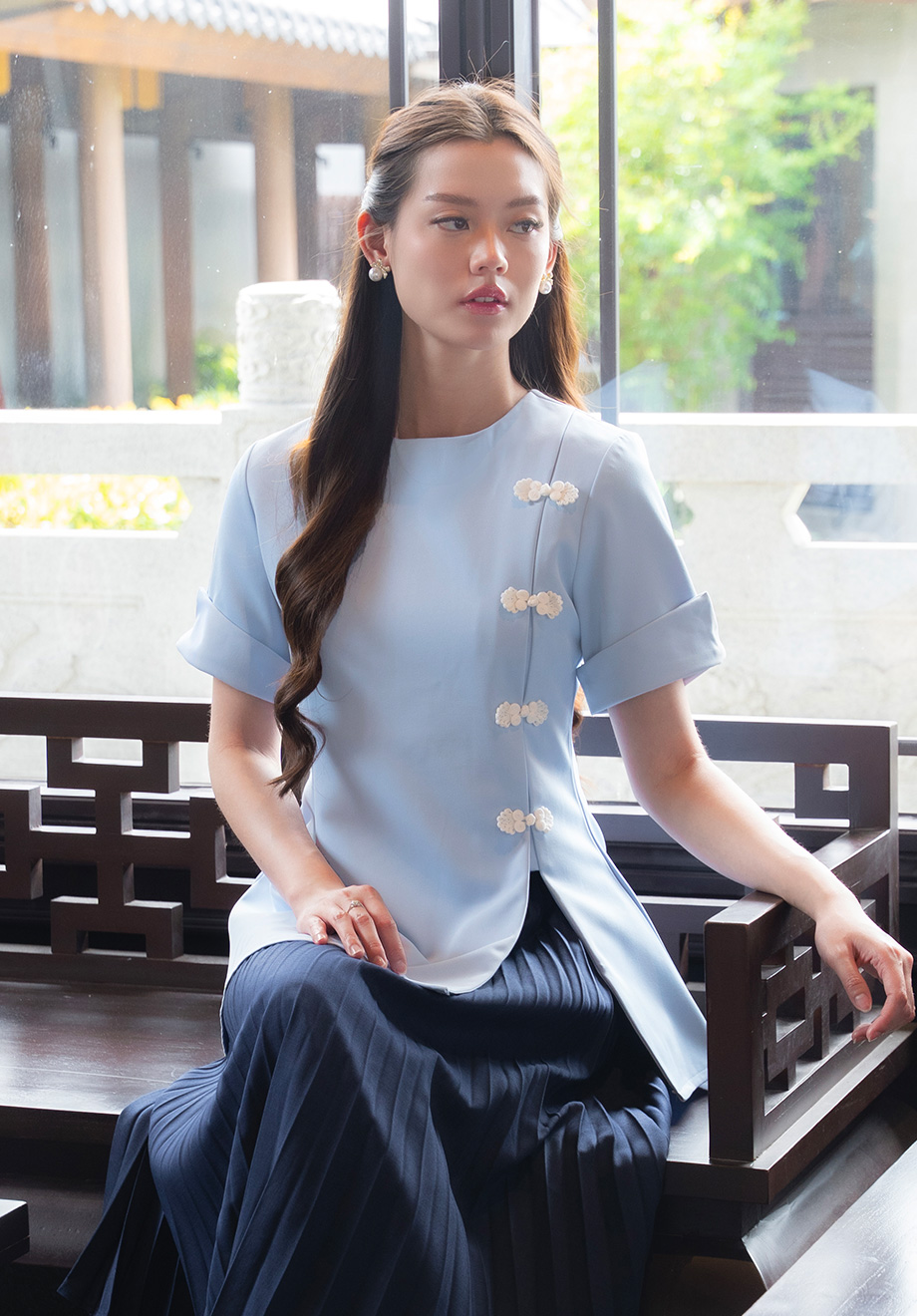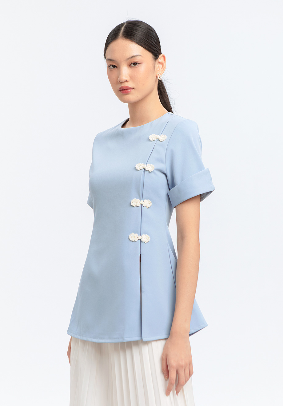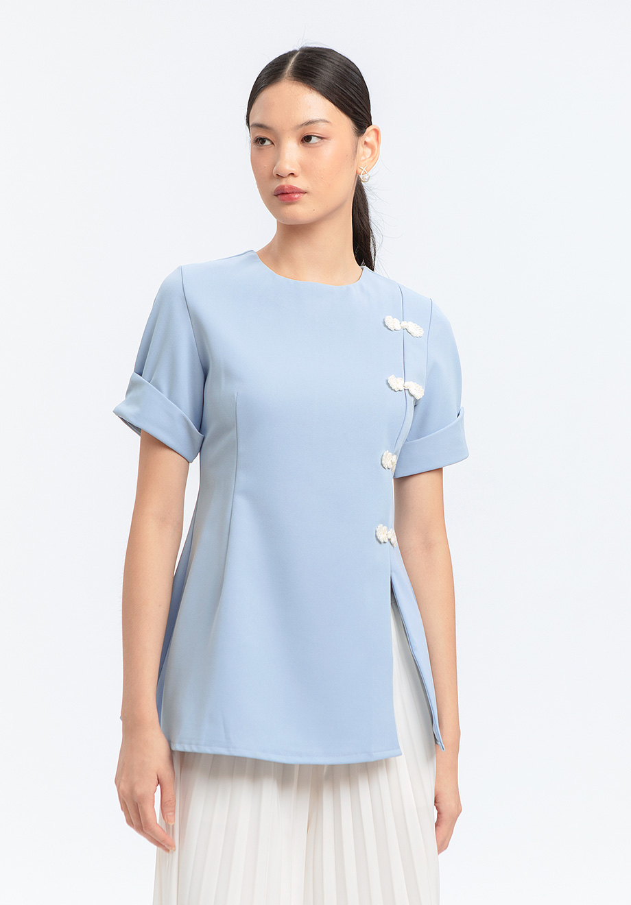 Model is 174 cm; weight: 50 kg & wears Small size
