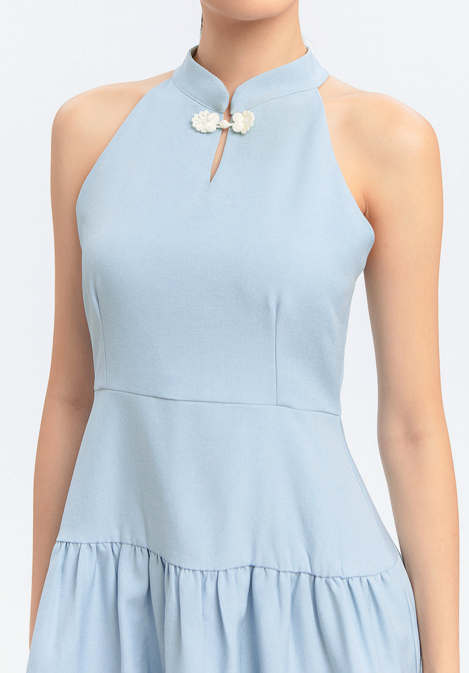 - Concealed back zipper for closure