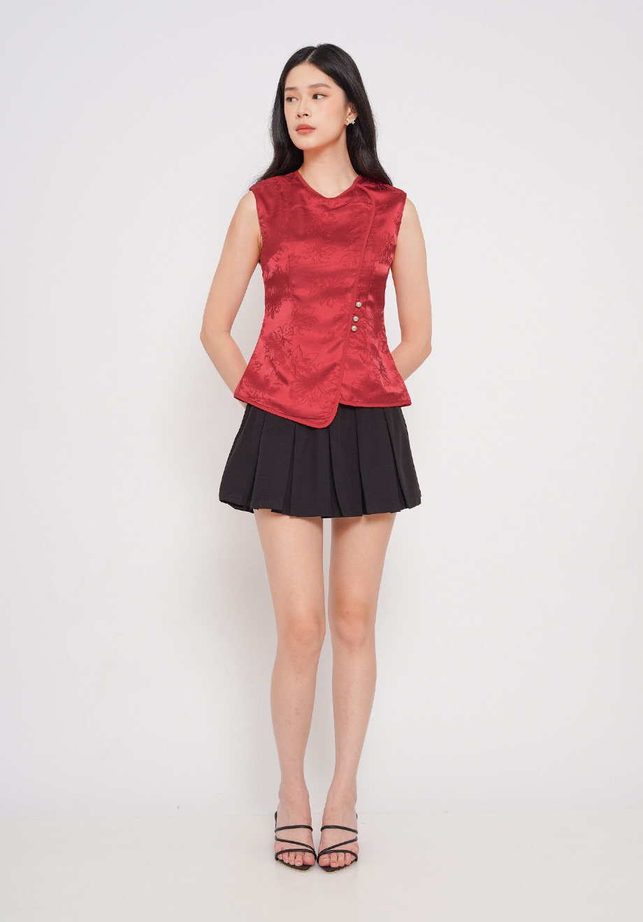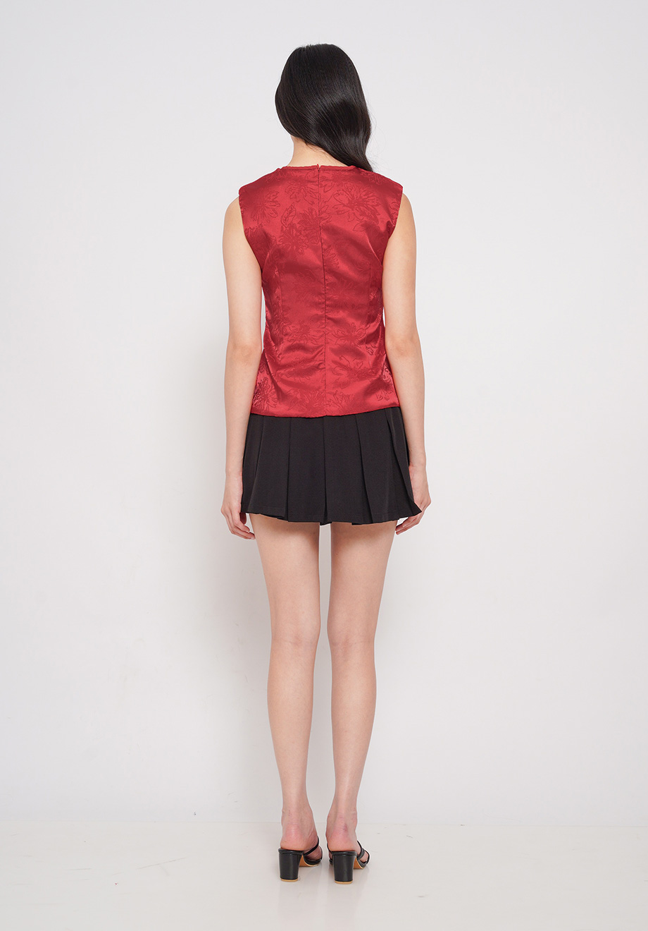 - Concealed back zipper for closure