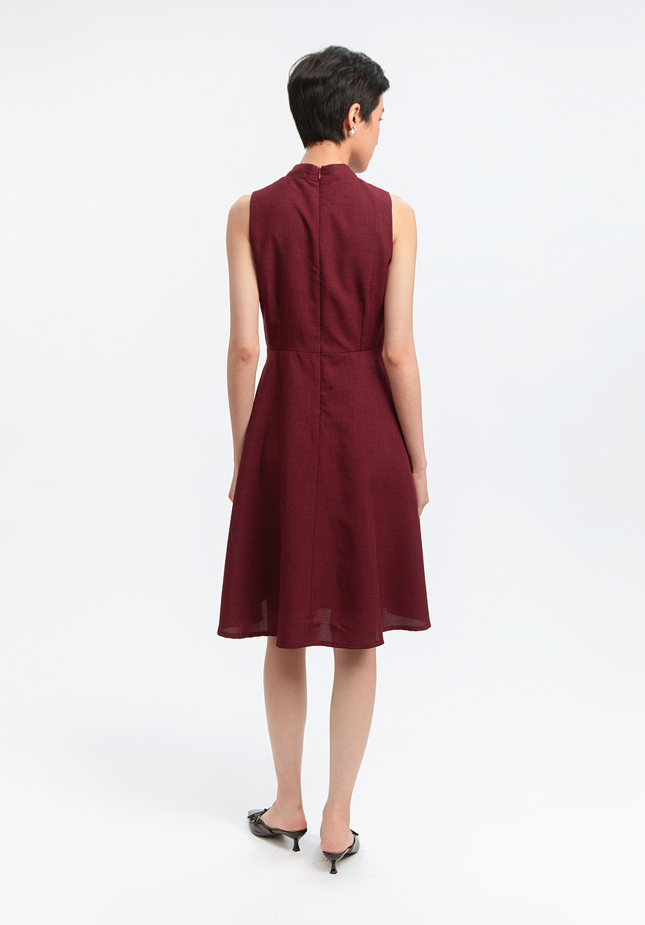 - Concealed back zipper for closure