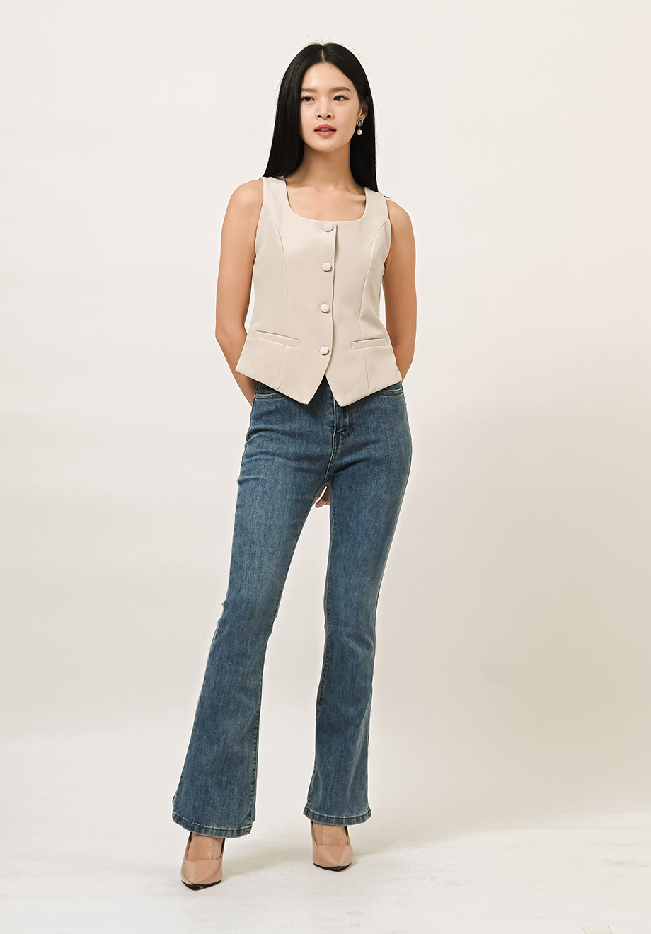 - Front buttons for closure