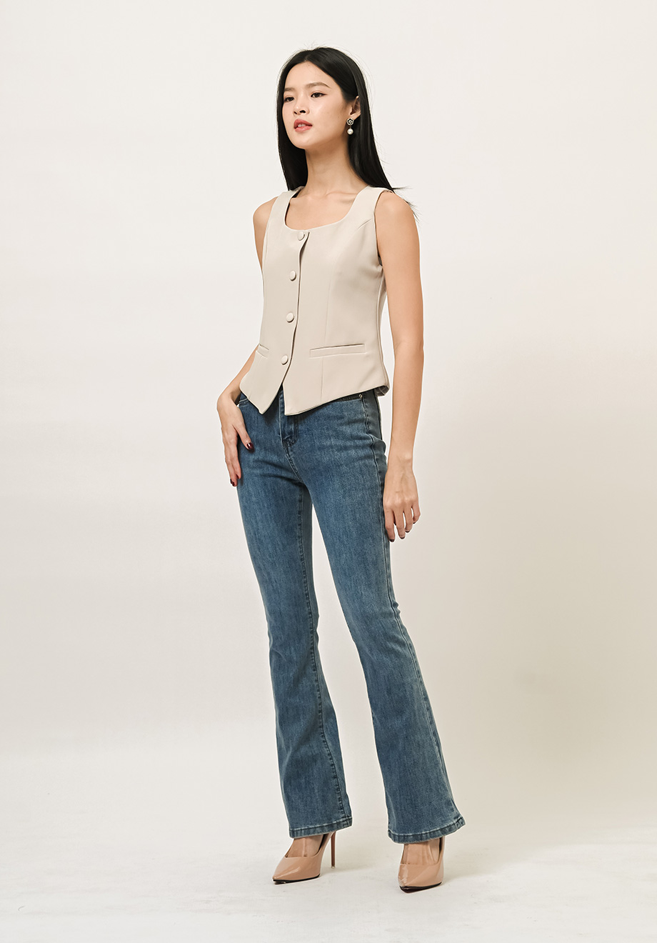Model is 174 cm; weight: 50 kg & wears Small size