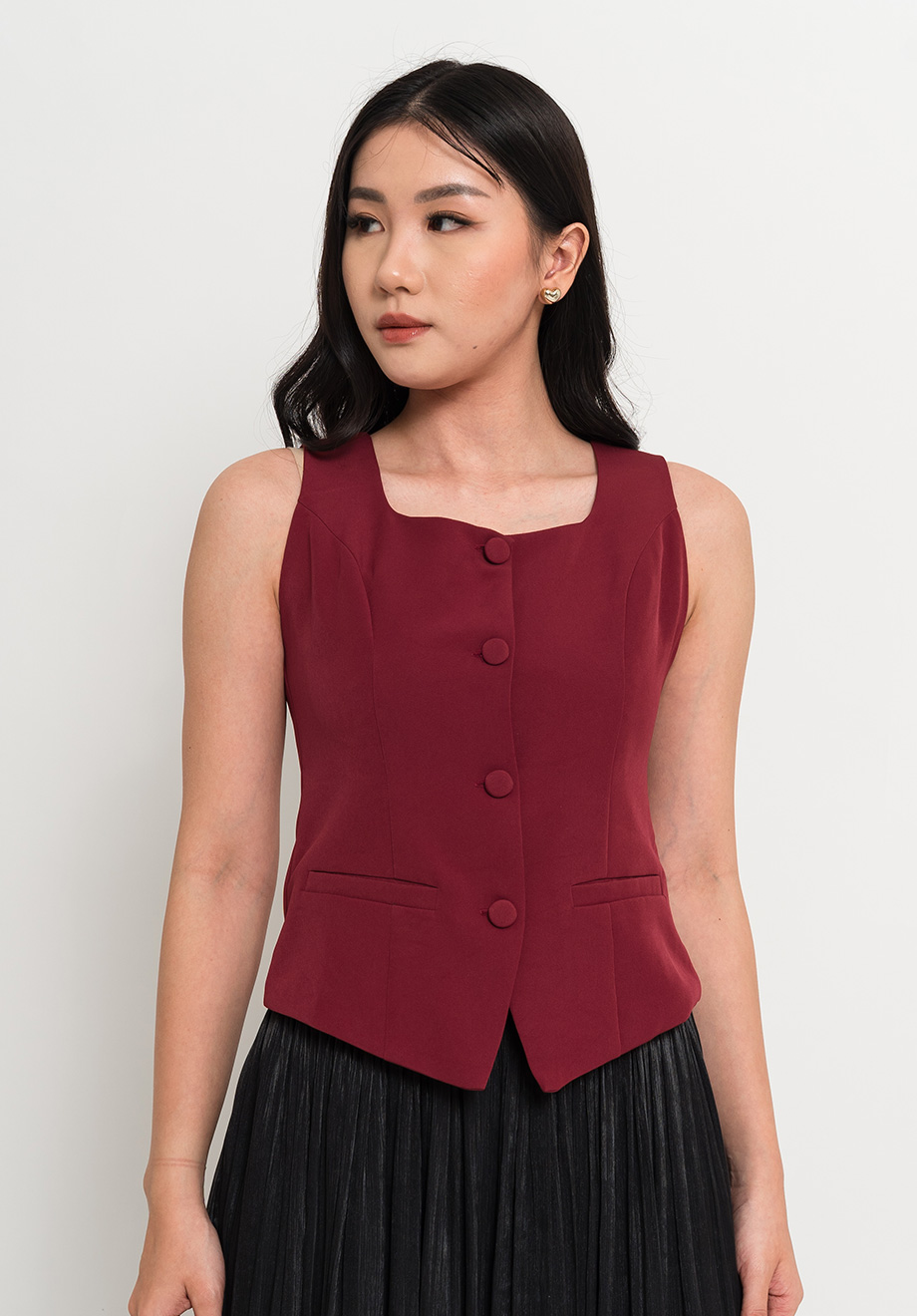 - Front buttons for closure