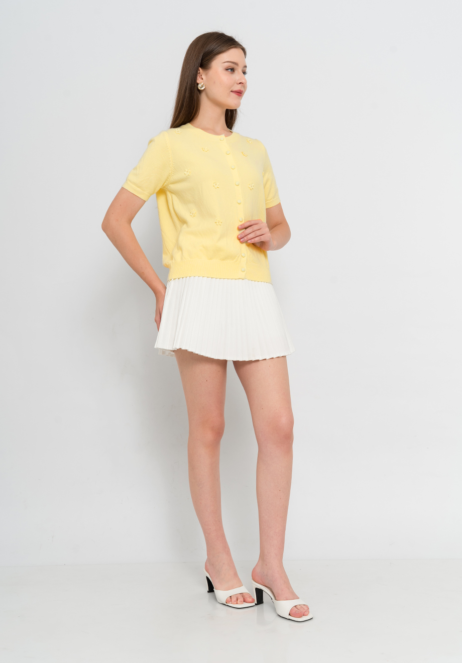 Model is 174 cm; weight: 50 kg & wears Small size