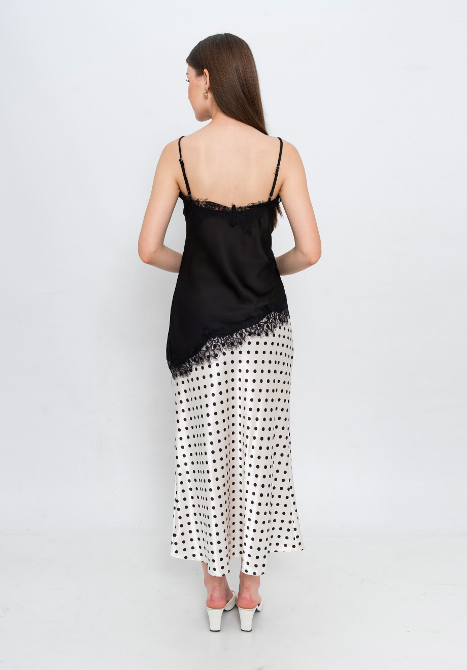 Model is 174 cm; weight: 50 kg & wears Small size