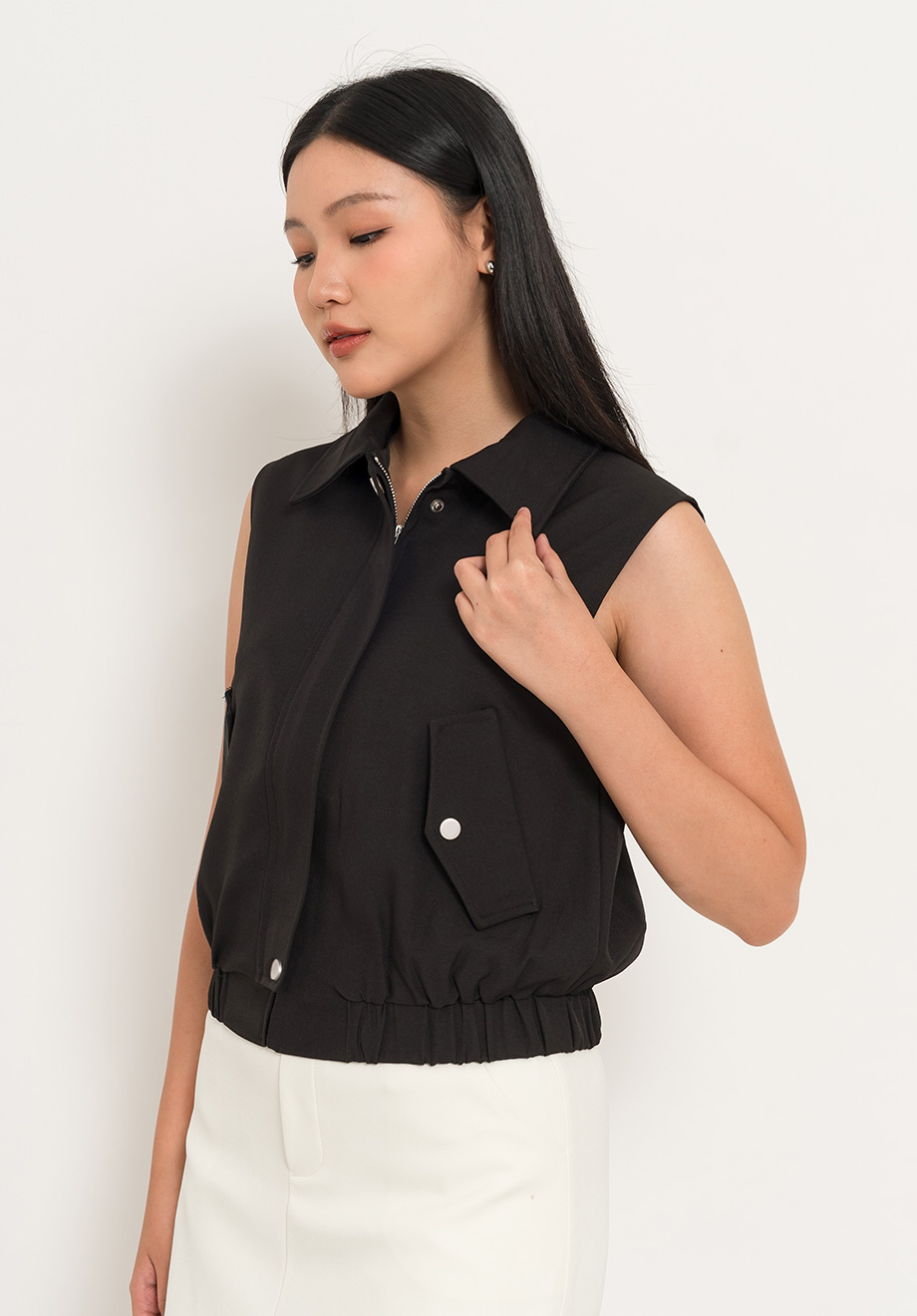 - Front zipper & buttons for closure