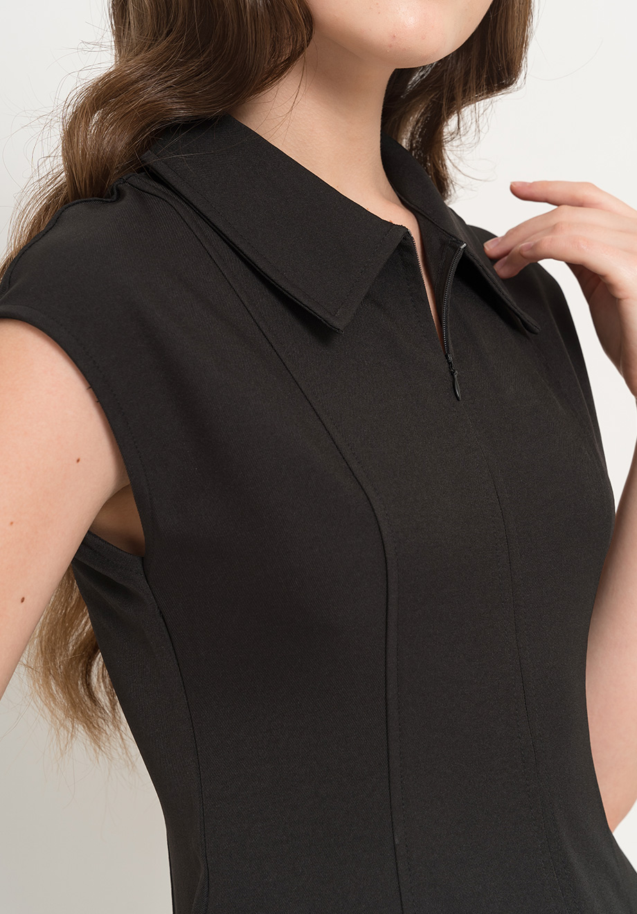 - Concealed front zipper for closure