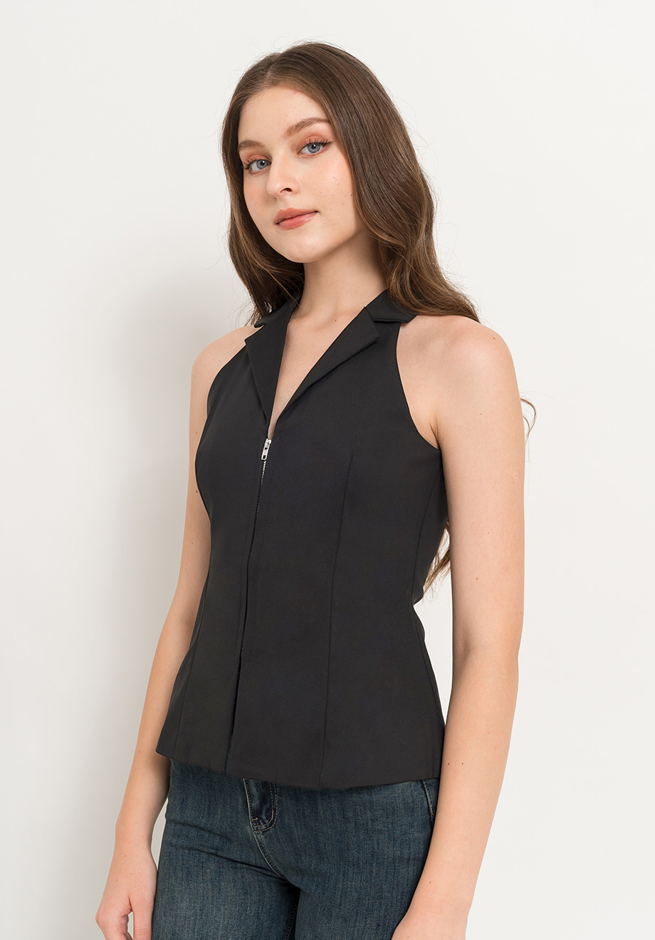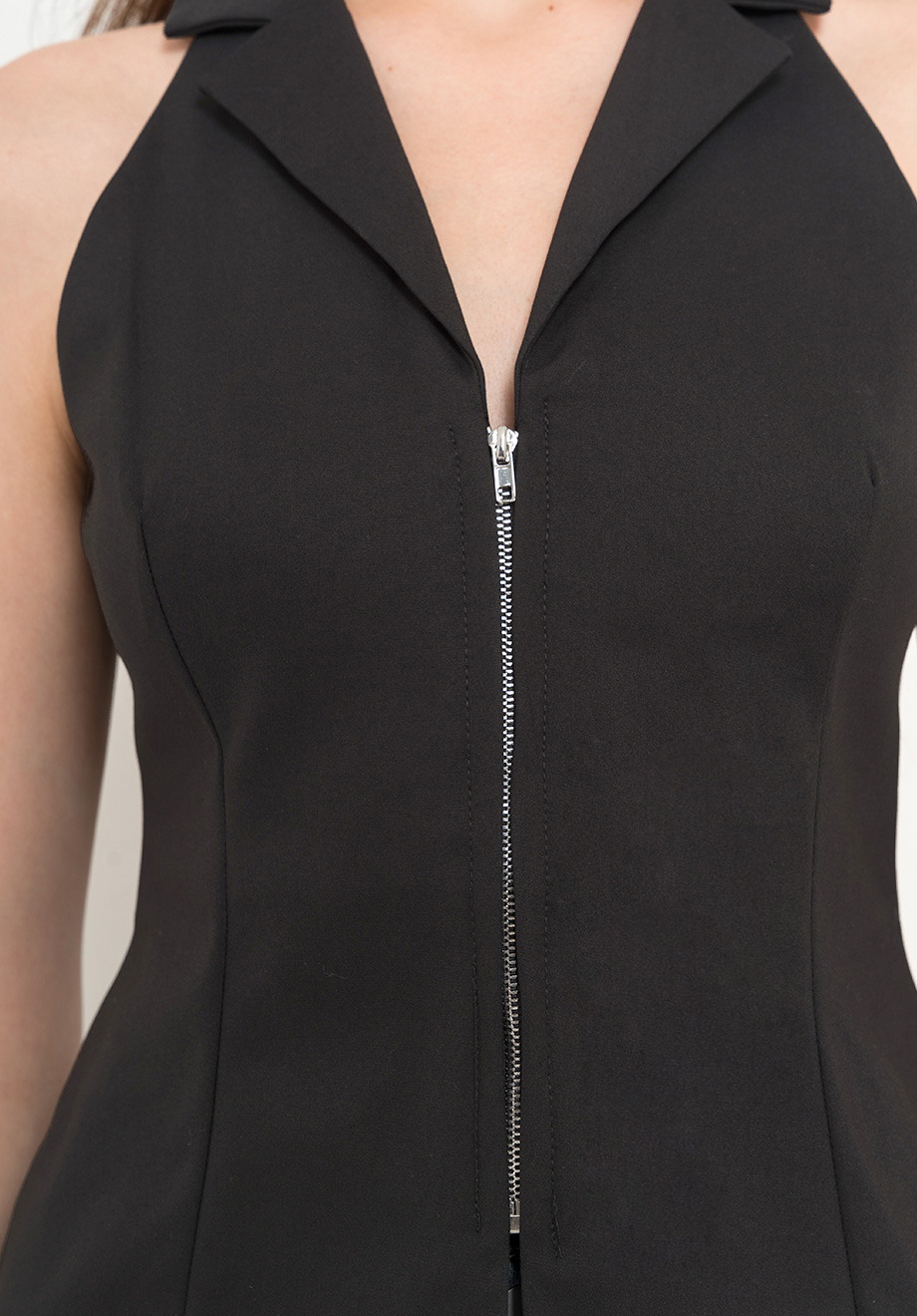 - Front zipper for closure