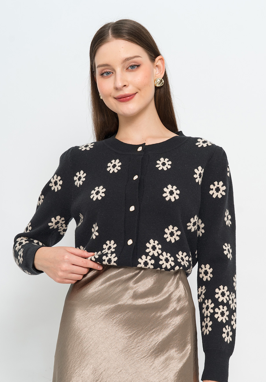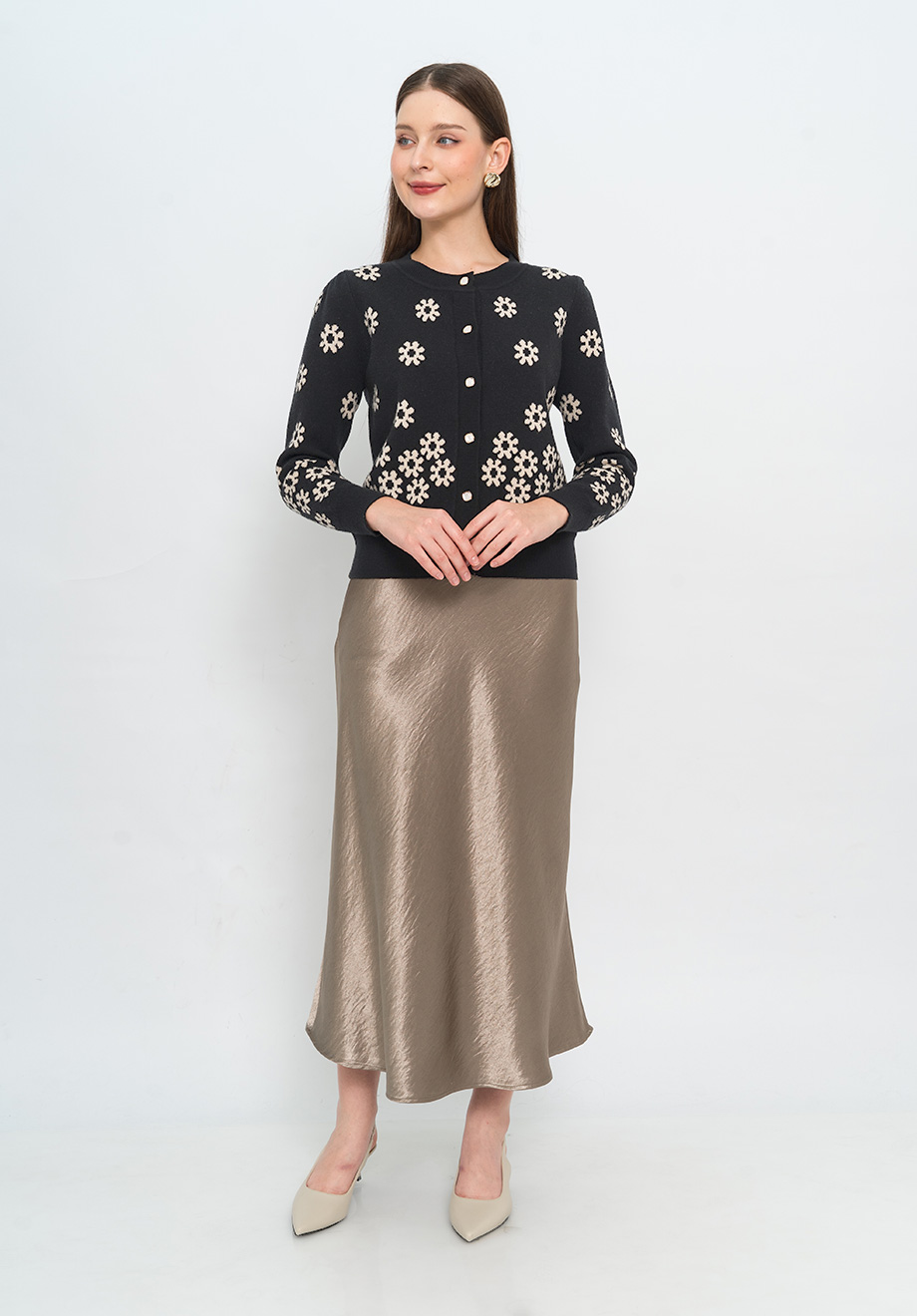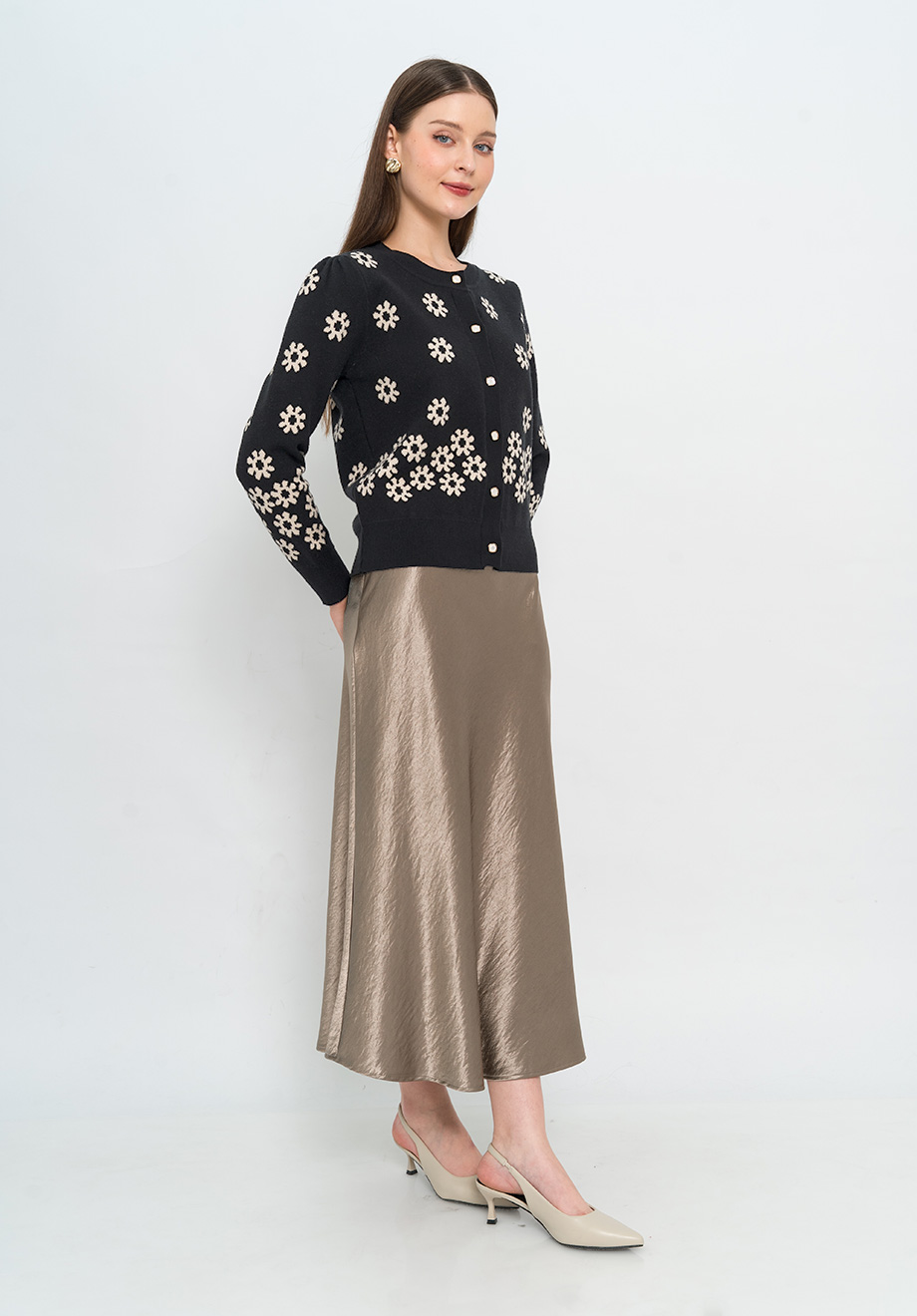 Model is 174 cm; weight: 50 kg & wears Small size
