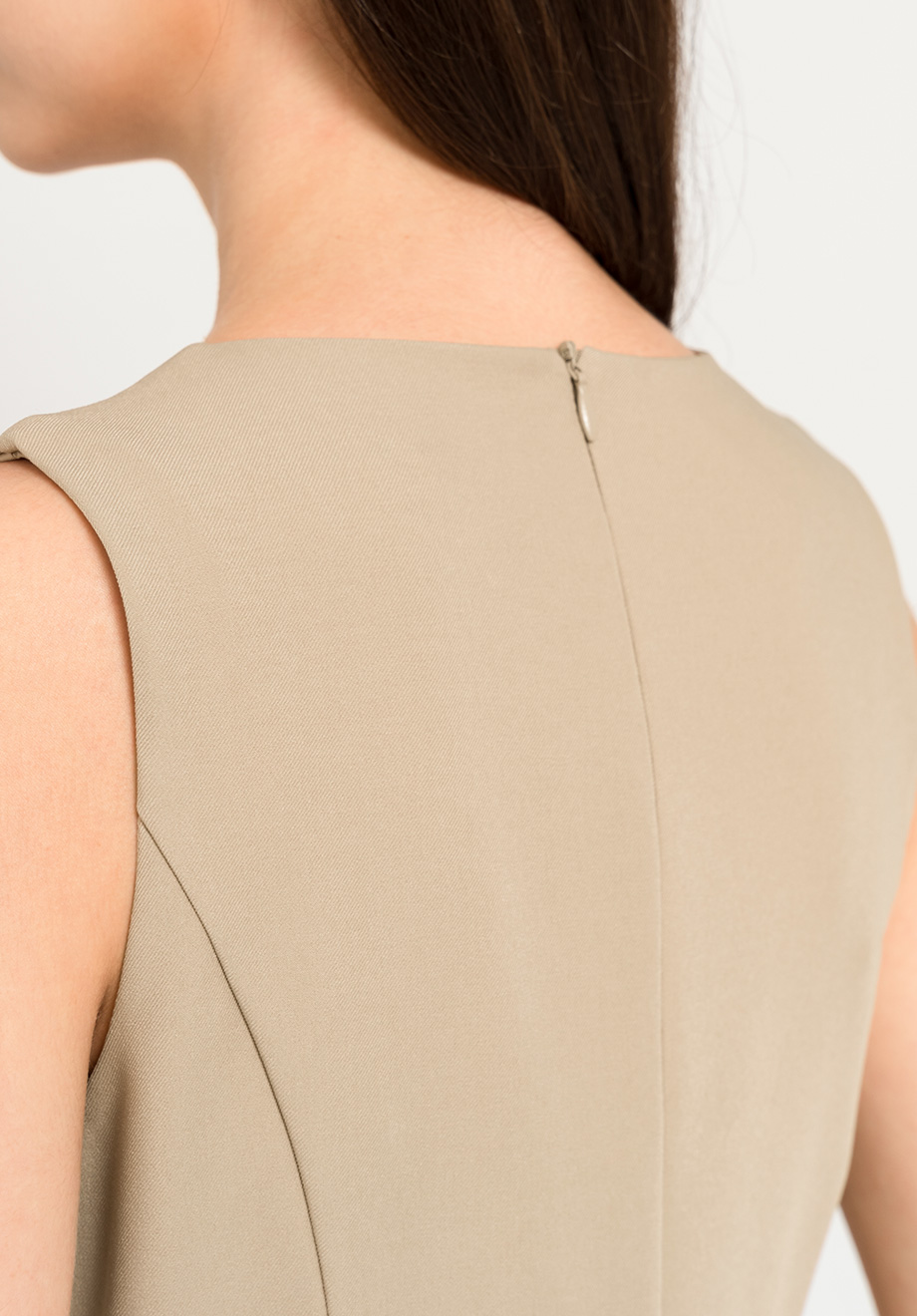 - Concealed back zipper for closure