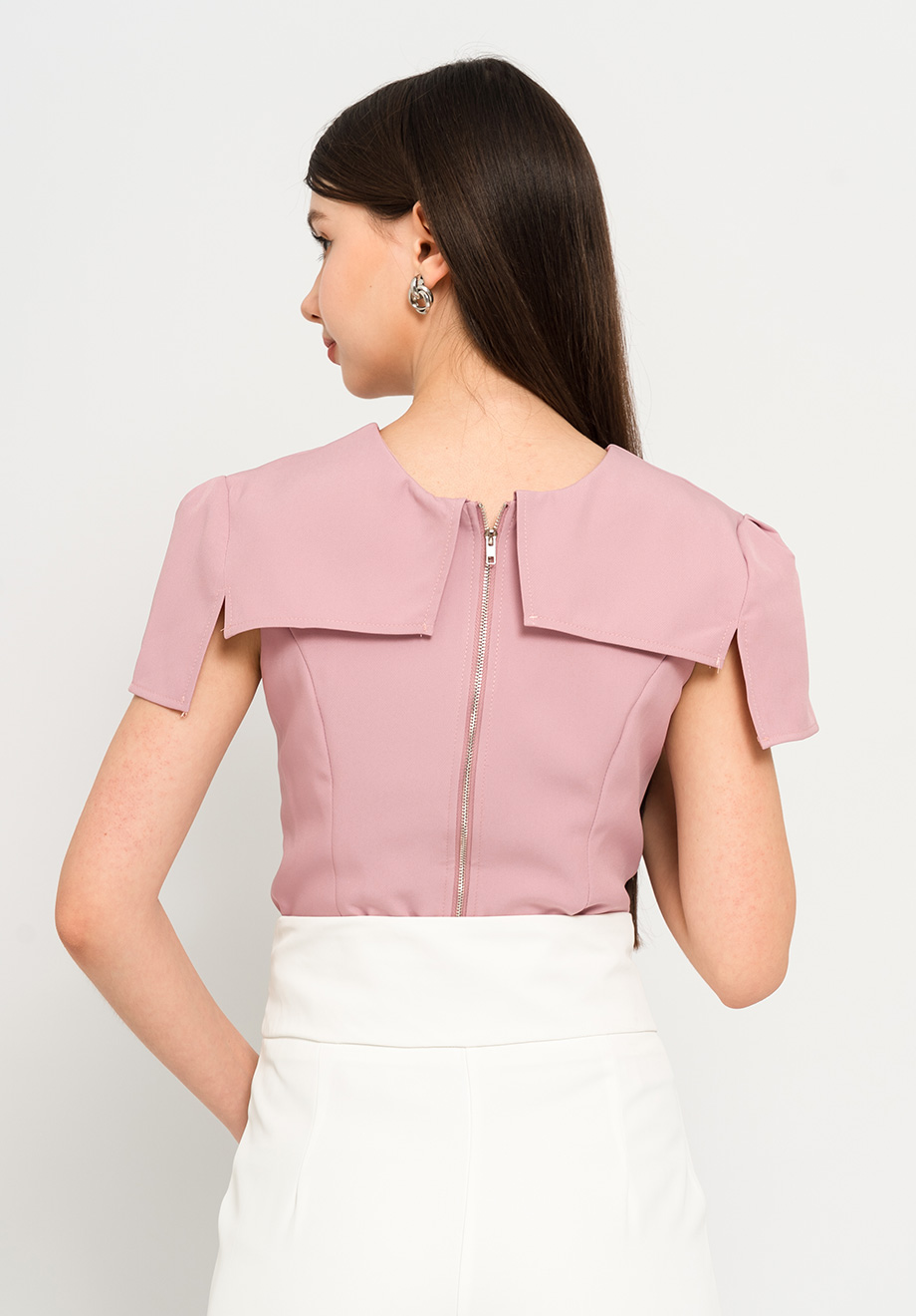 - Metal back zipper for closure