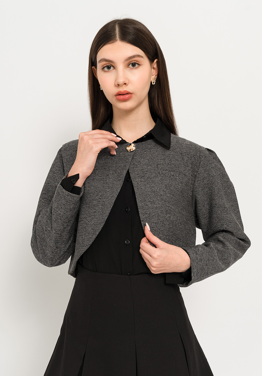 Model is 174 cm; weight: 50 kg & wears Small size