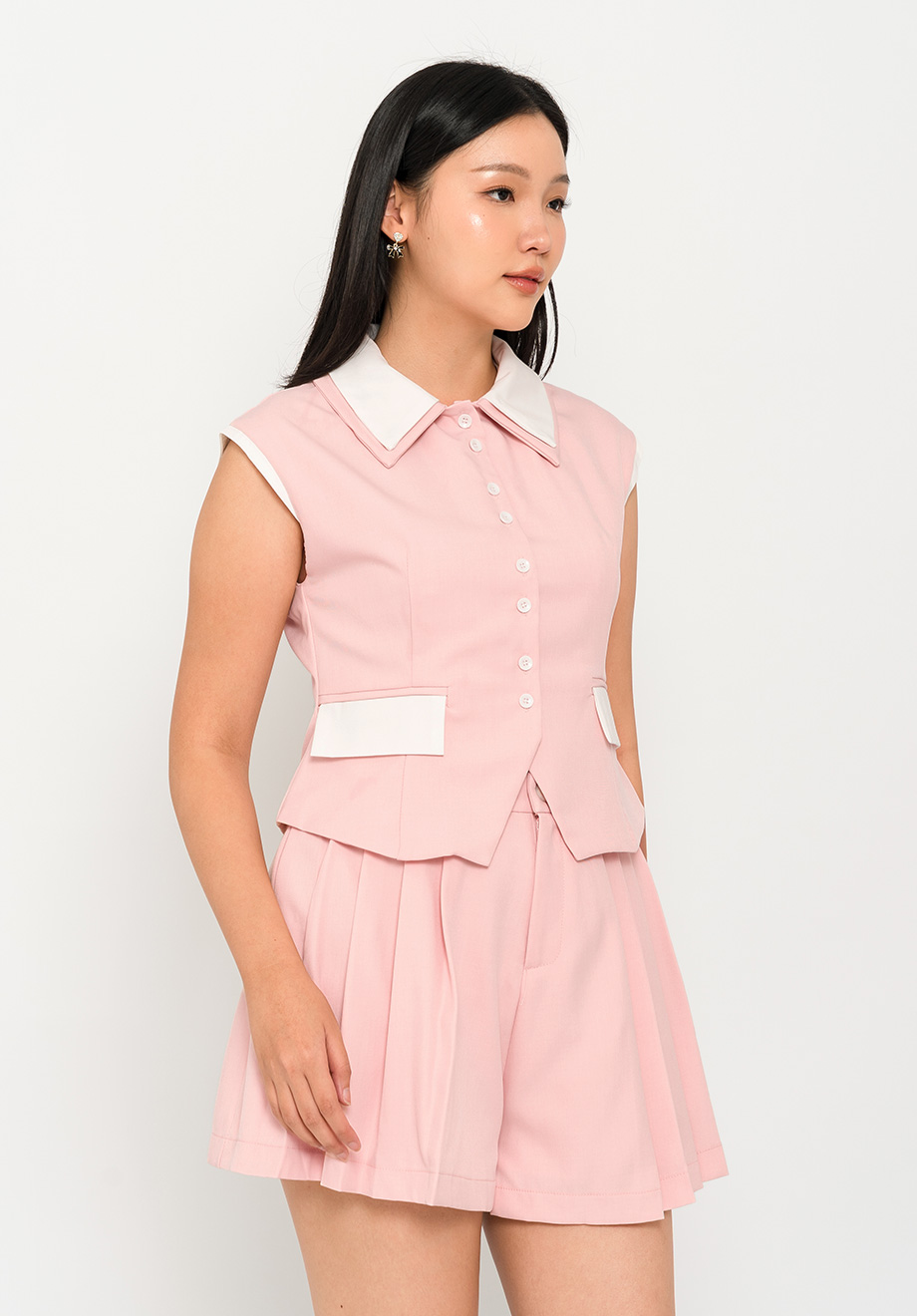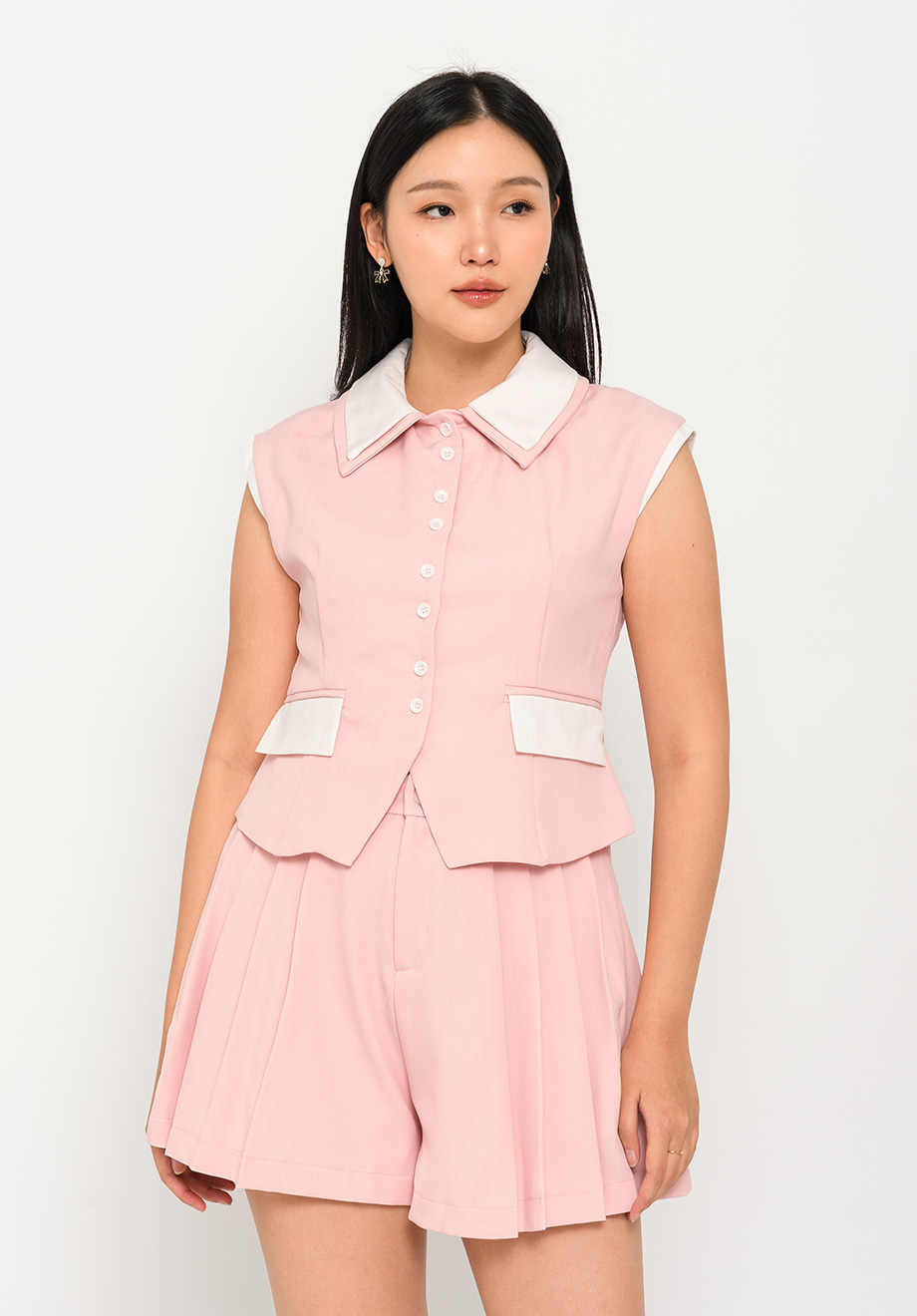 - Concealed front zipper & button for closure