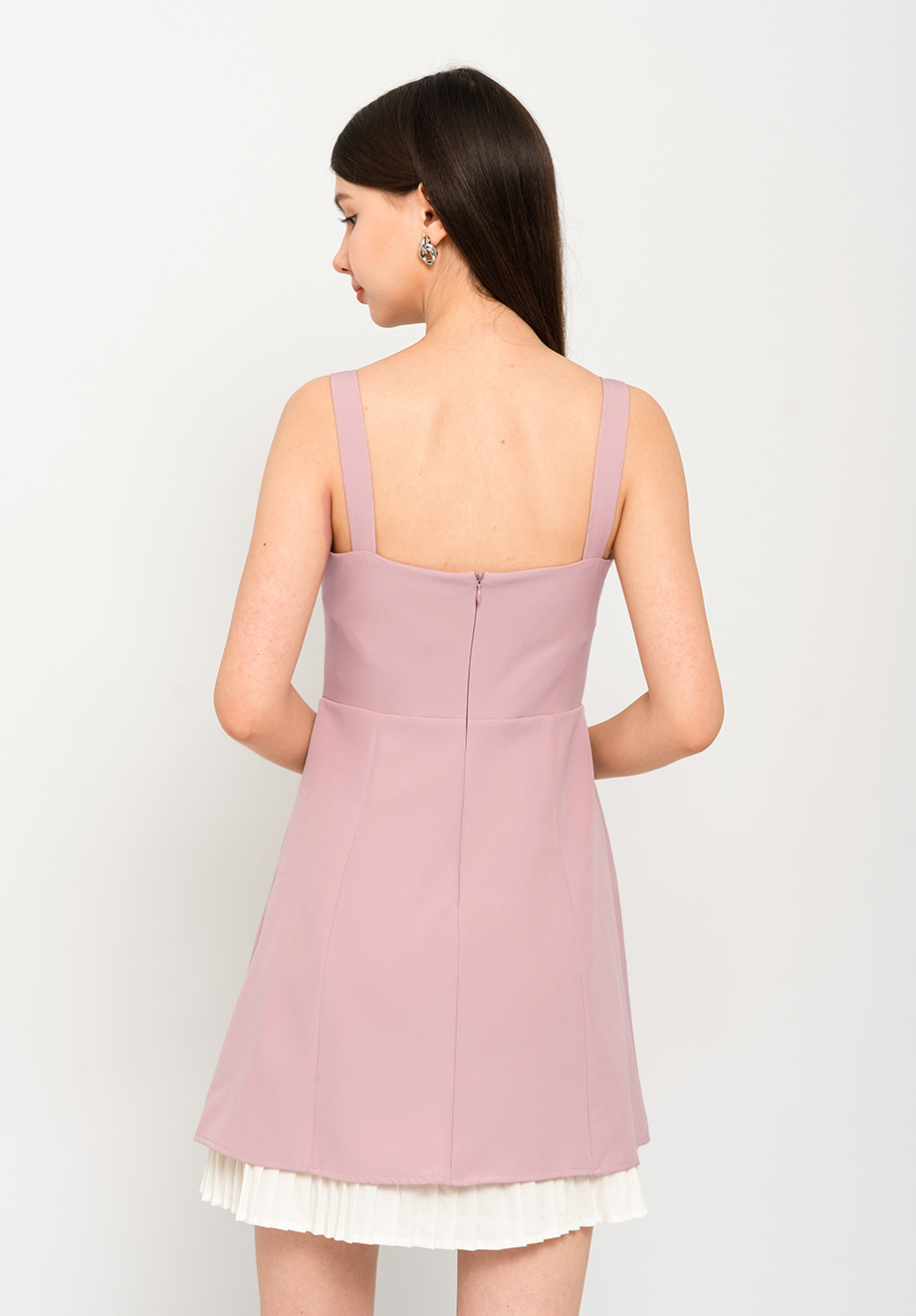 - Concealed back zipper for closure