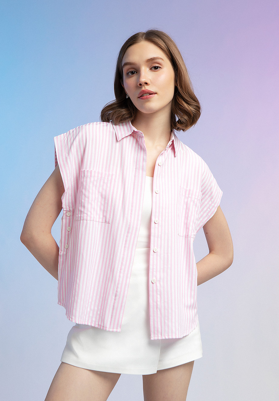 - Concealed front buttons for closure