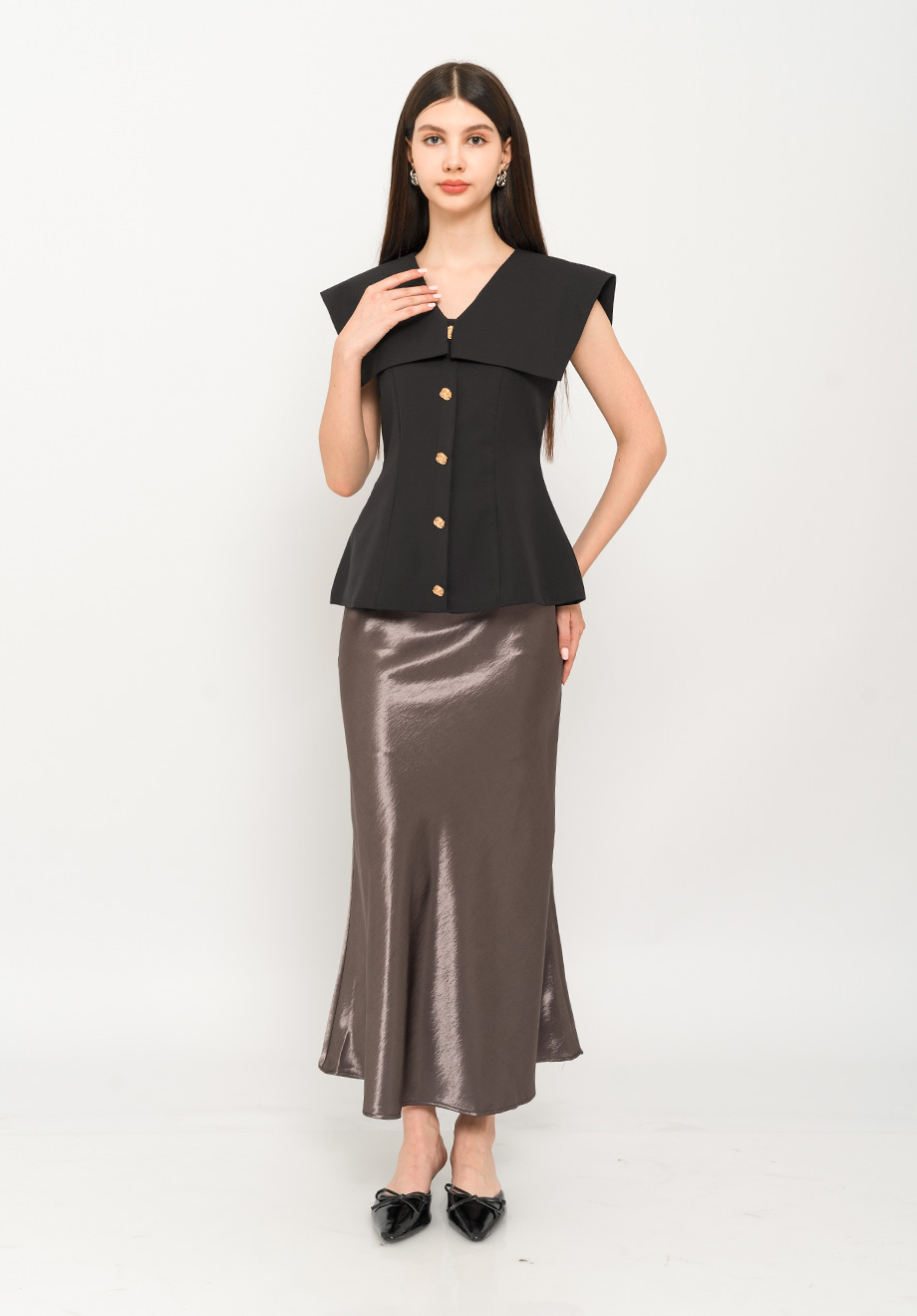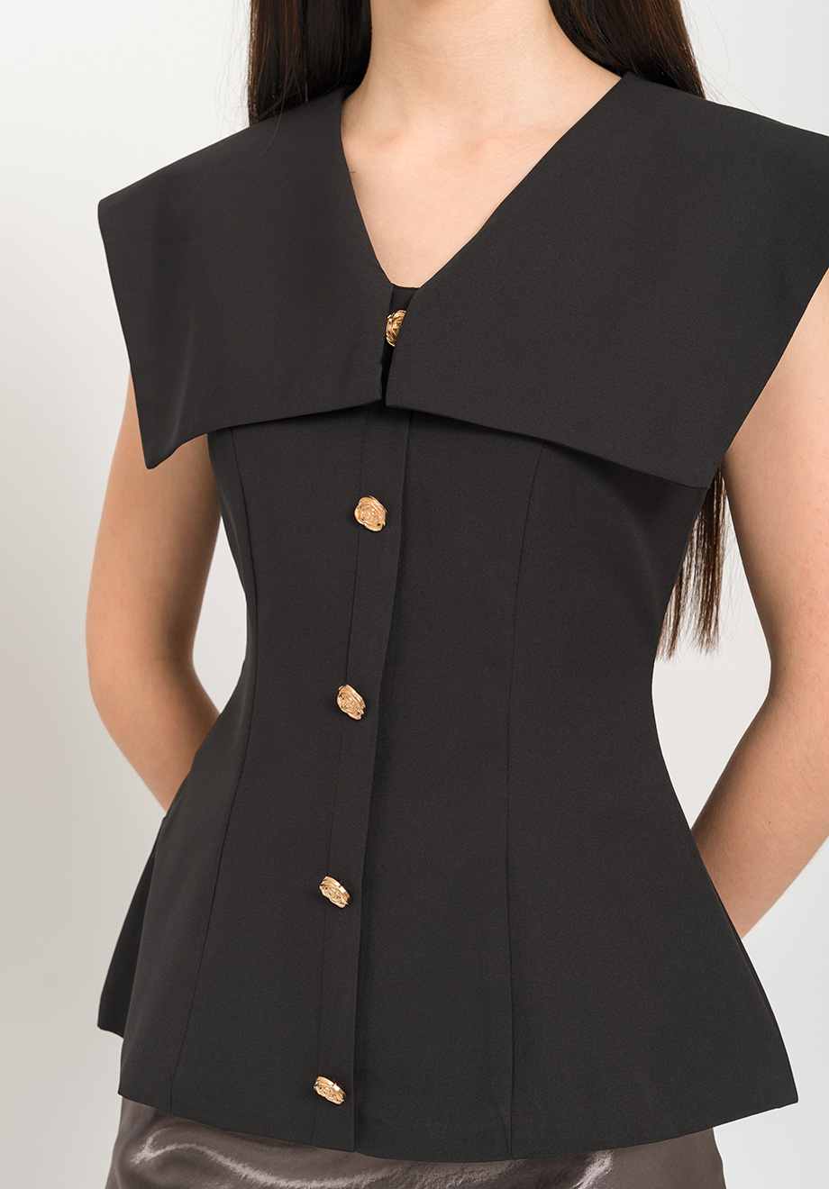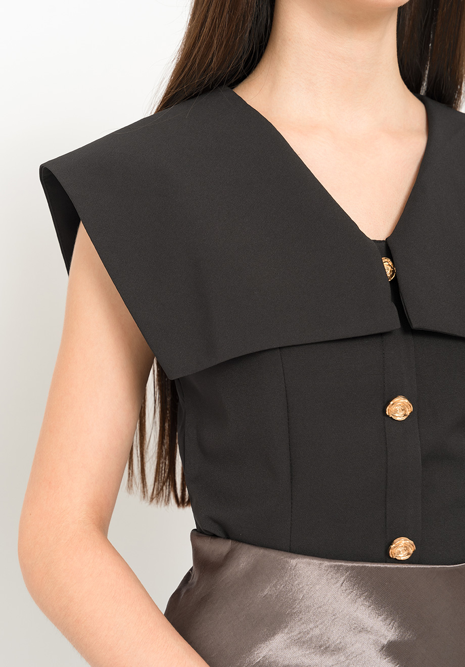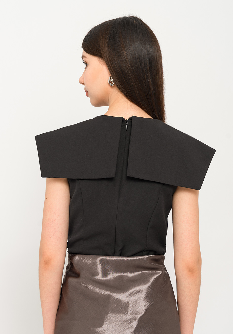 - Concealed back zipper for closure