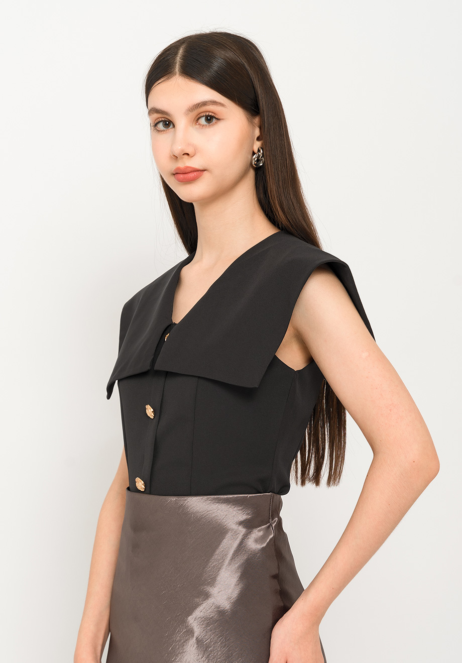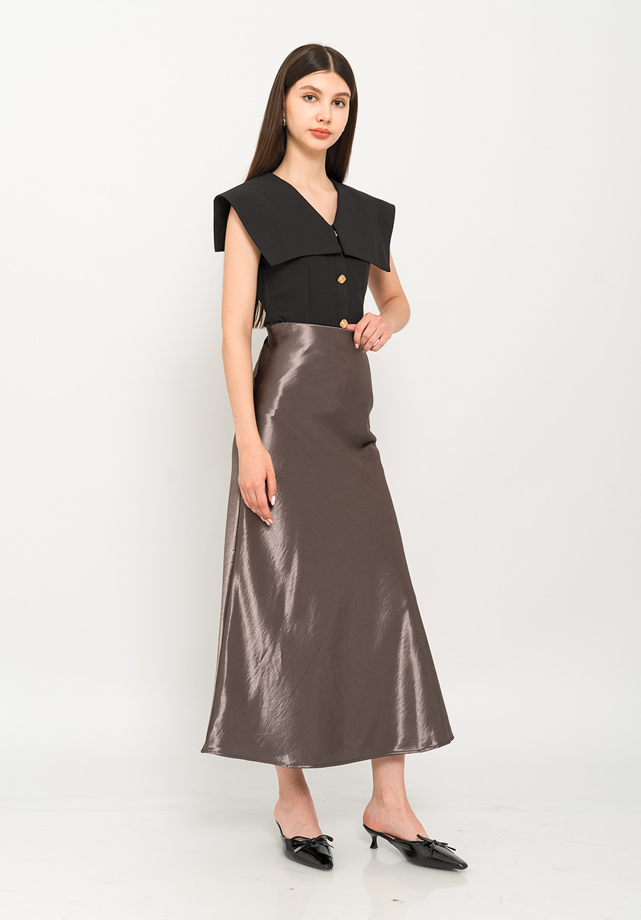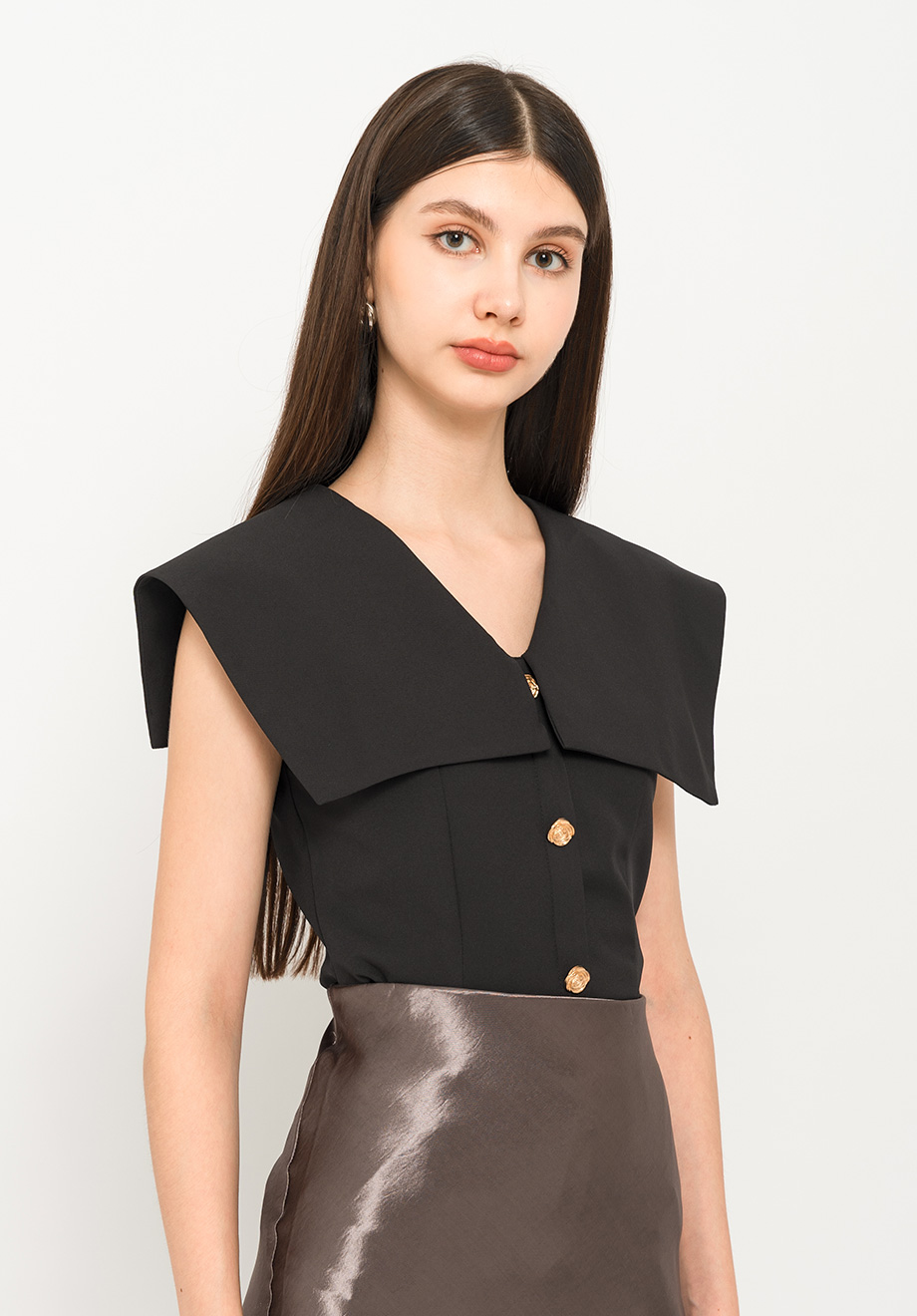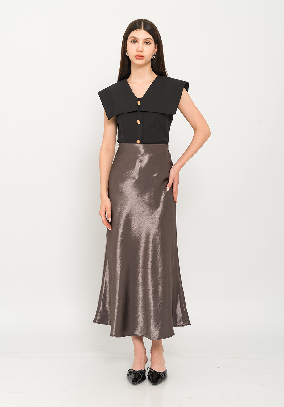 - Concealed back zipper for closure