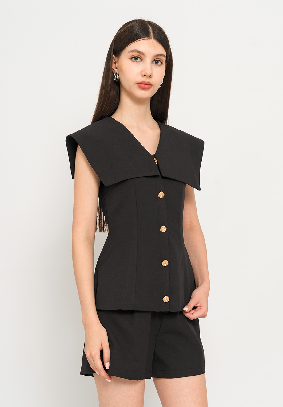 Model is 174 cm; weight: 50 kg & wears Small size