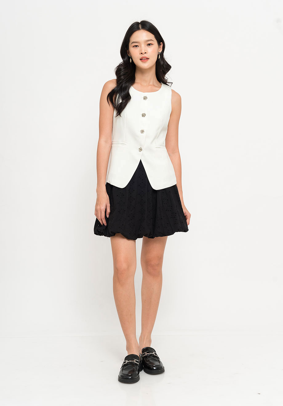 - Front buttons for closure