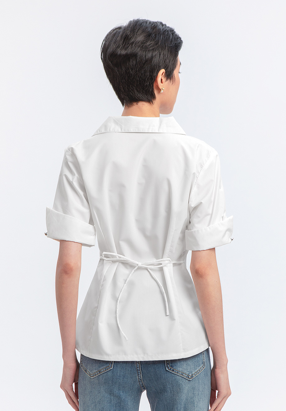 - Self-tied ribbon at back