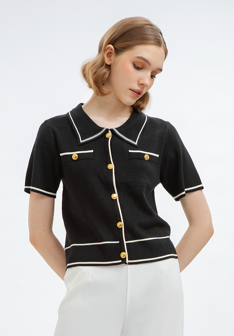 Model is 174 cm; weight: 50 kg & wears Small size