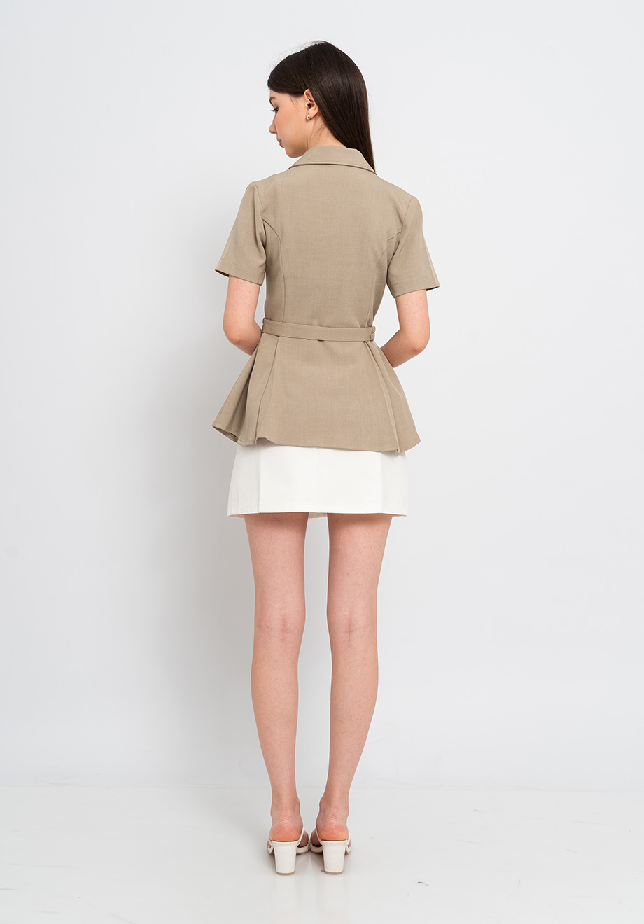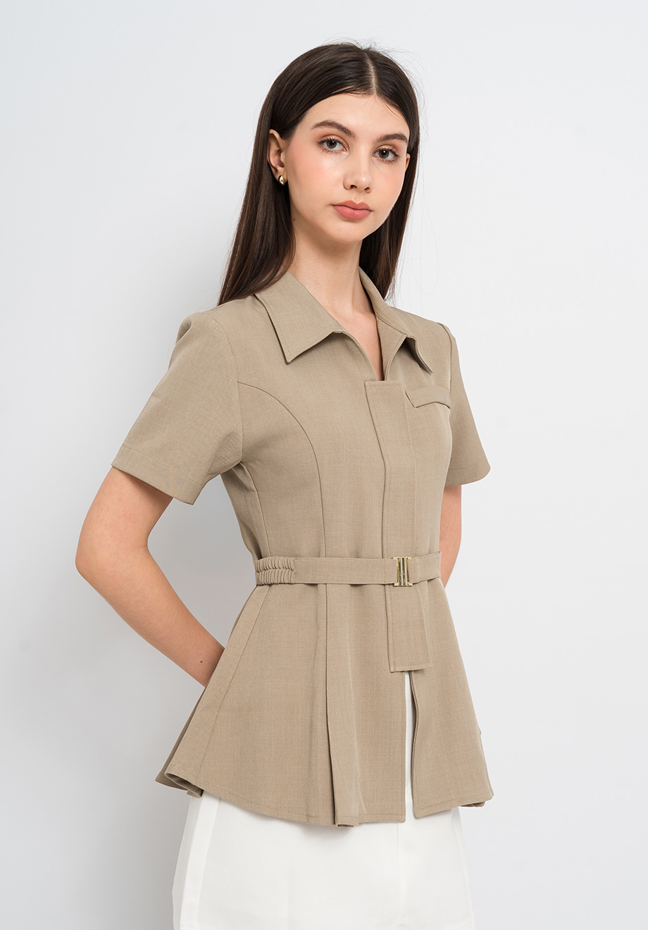 - Concealed front zipper for closure