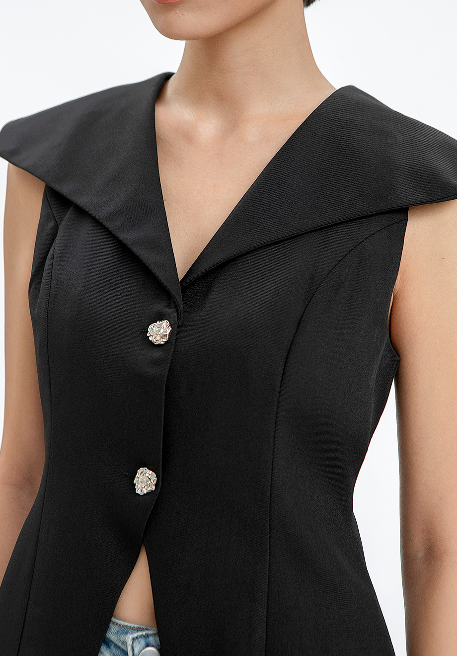 - Functional front buttons for closure