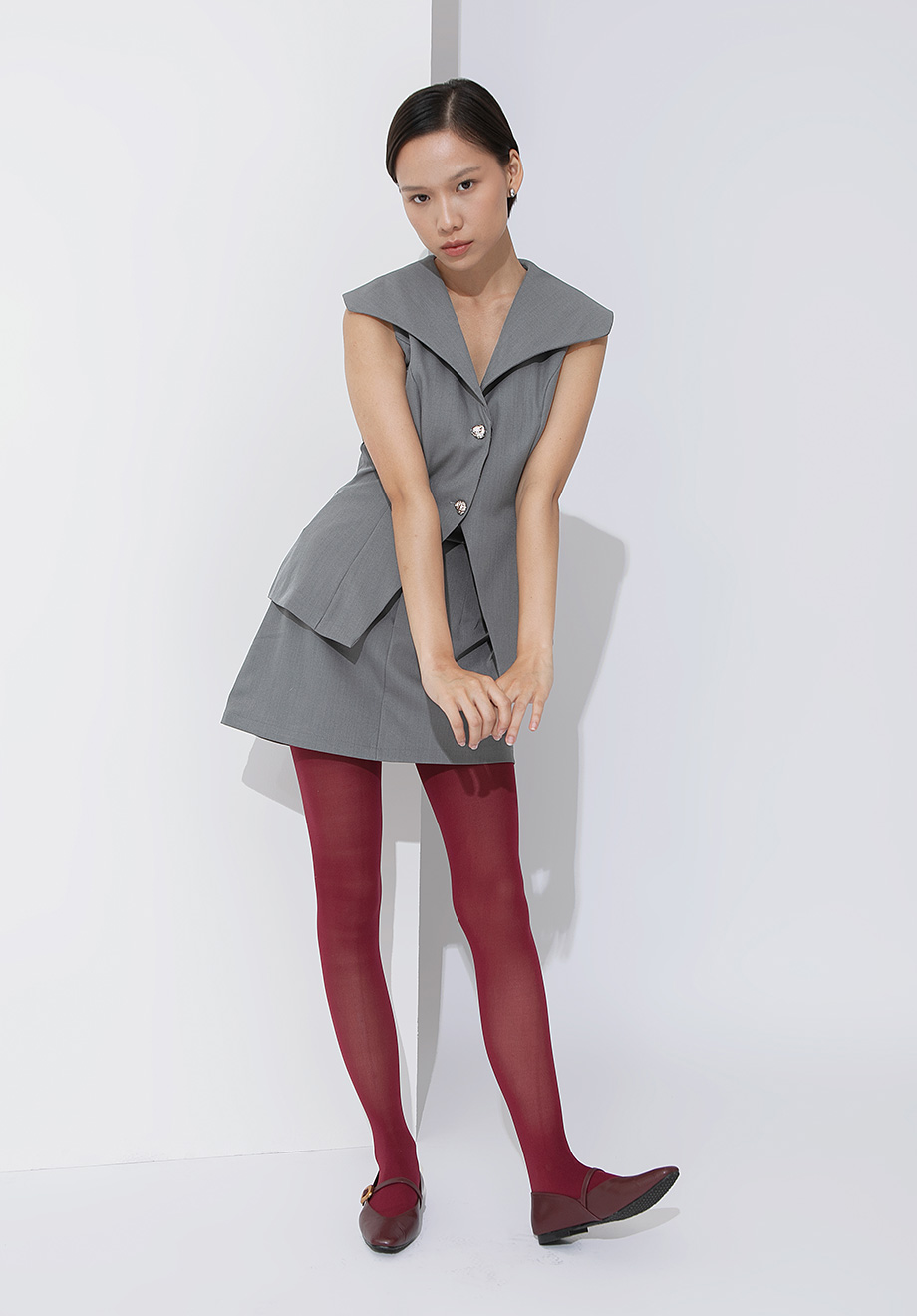 Model is 174 cm; weight: 50 kg & wears Small size