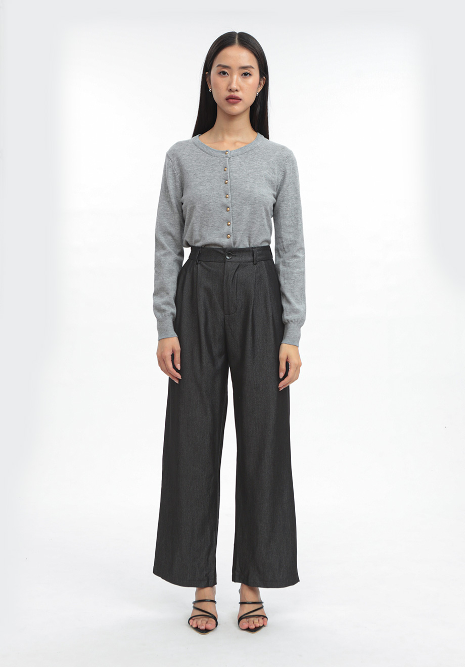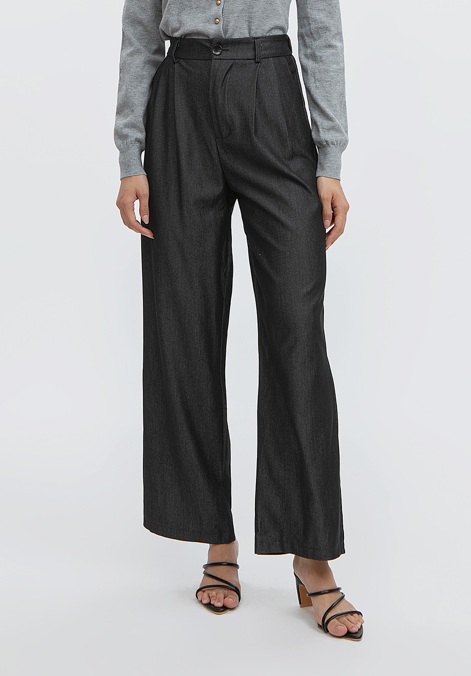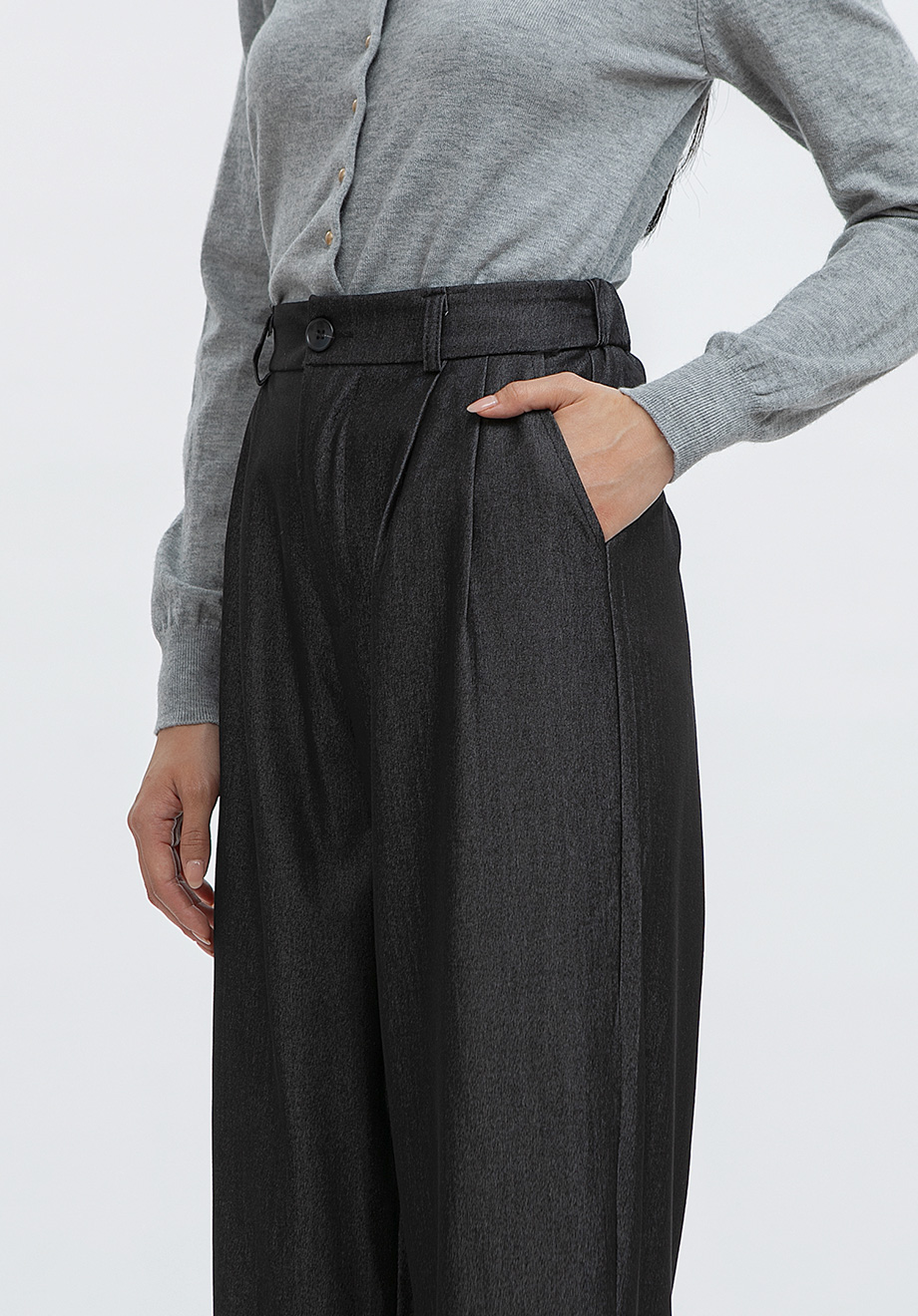 - Concealed front zipper & button for closure