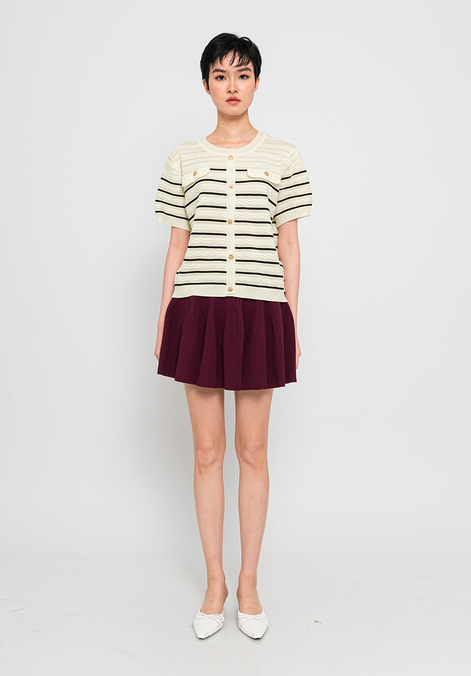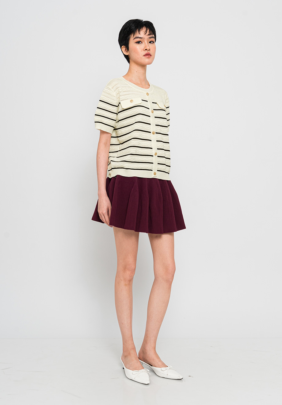 Model is 174 cm; weight: 50 kg