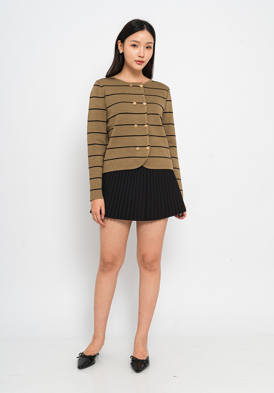 - Functional front buttons for closure
