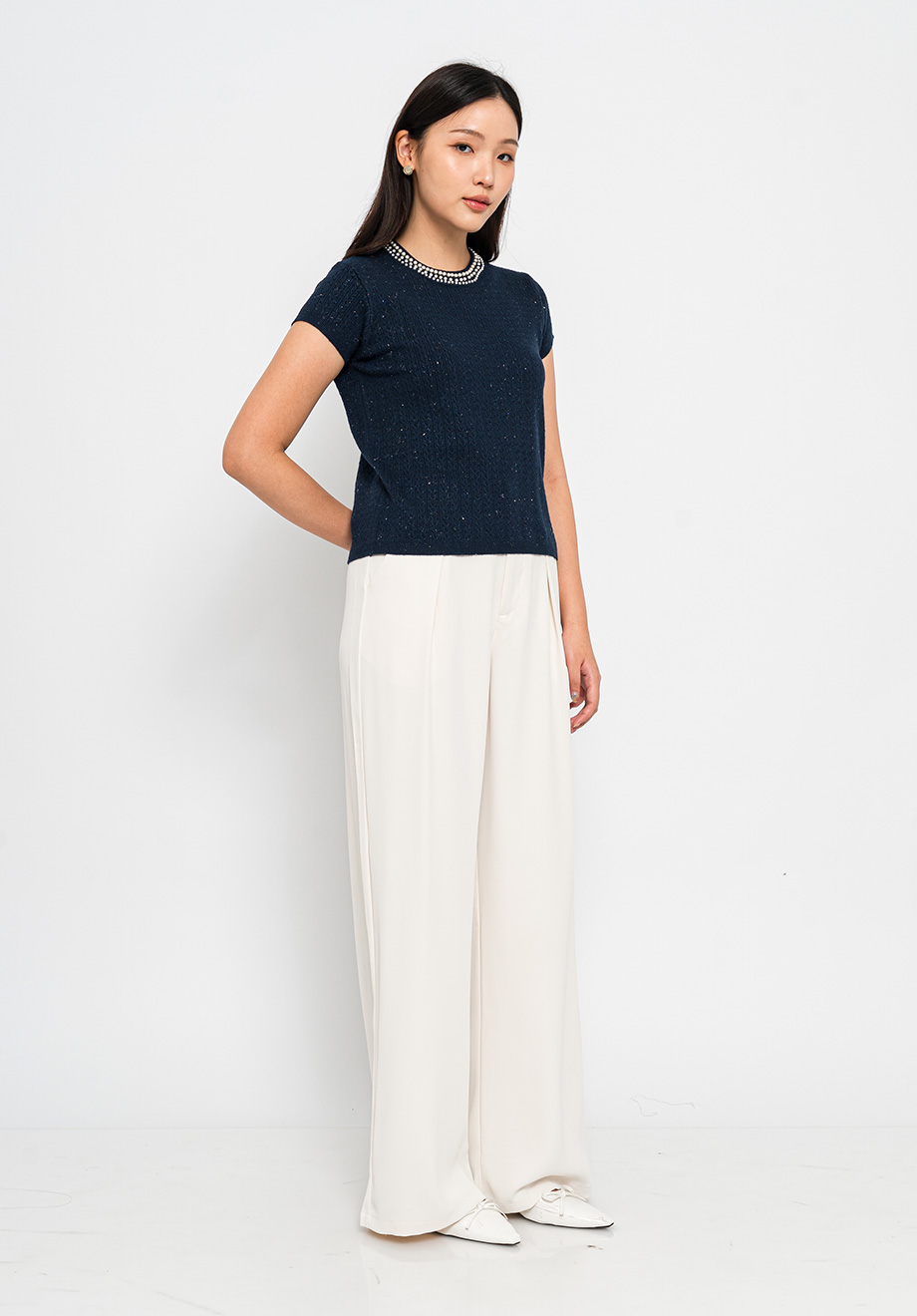 Model is 174 cm; weight: 50 kg