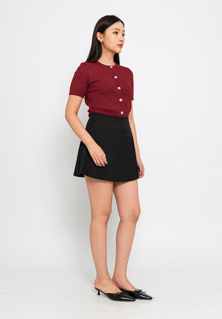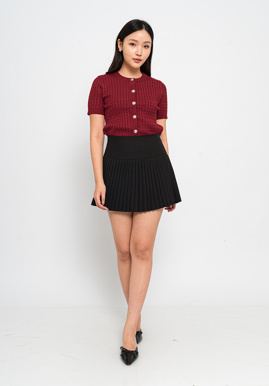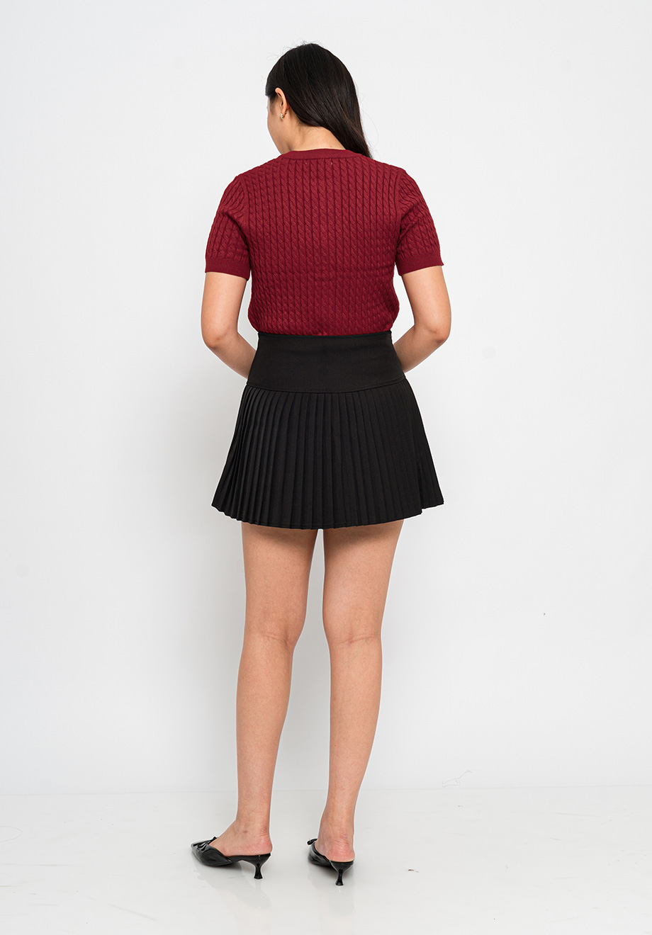 Model is 174 cm; weight: 50 kg