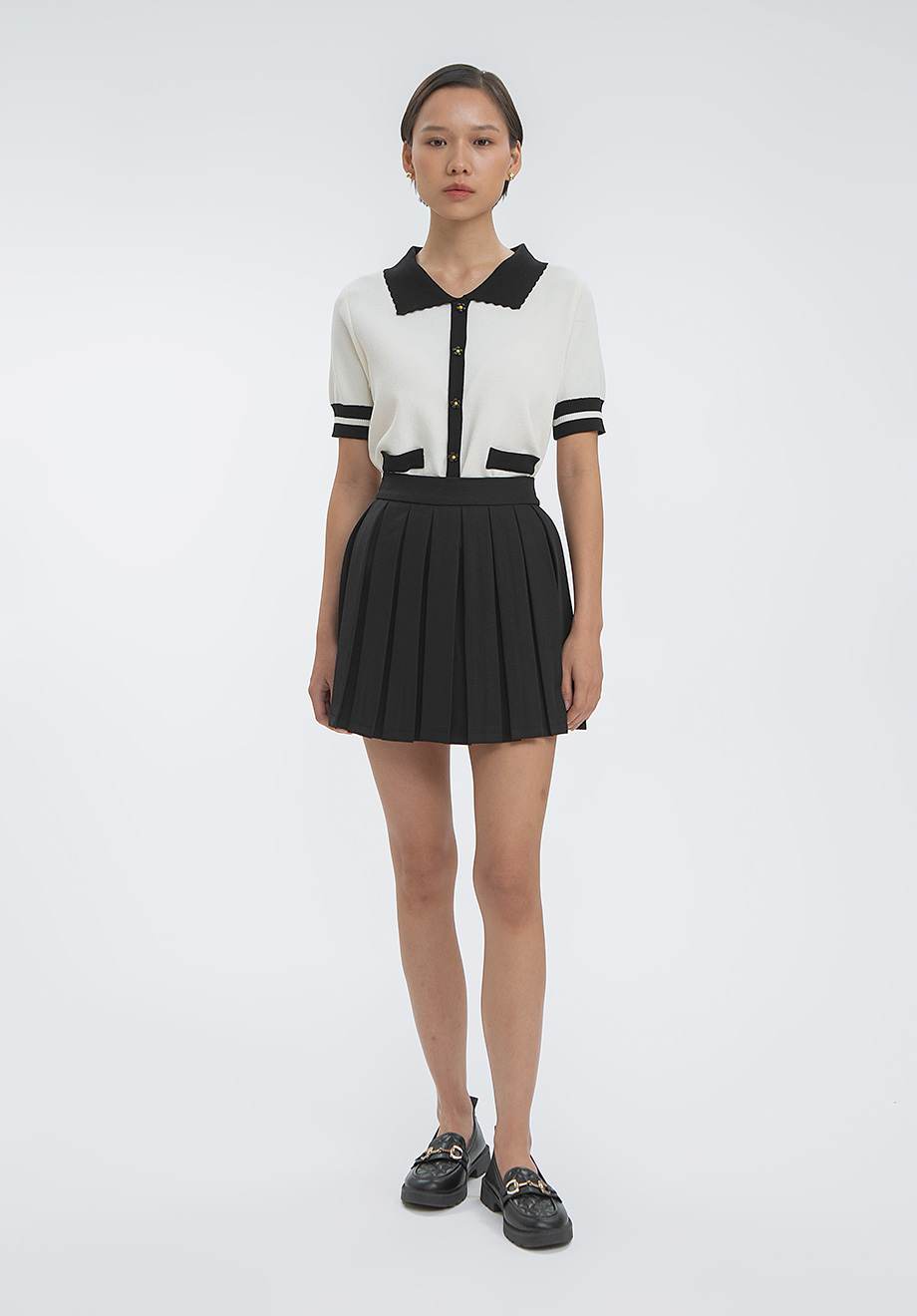 Model is 174 cm; weight: 50 kg & wears Small size