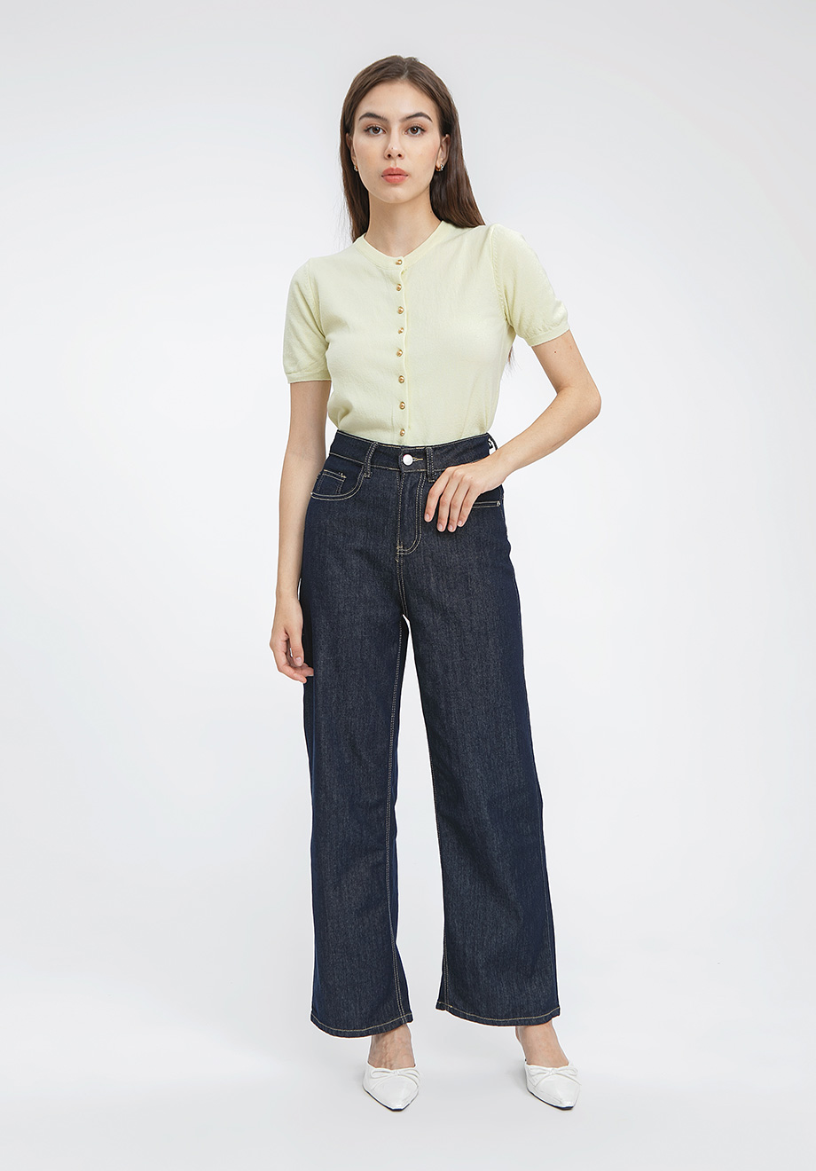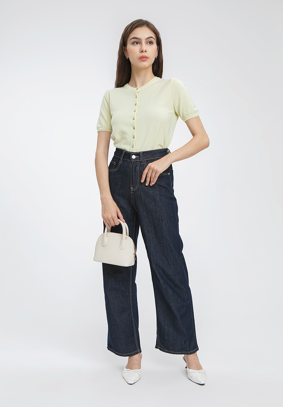 Model is 174 cm; weight: 50 kg & wears Small size