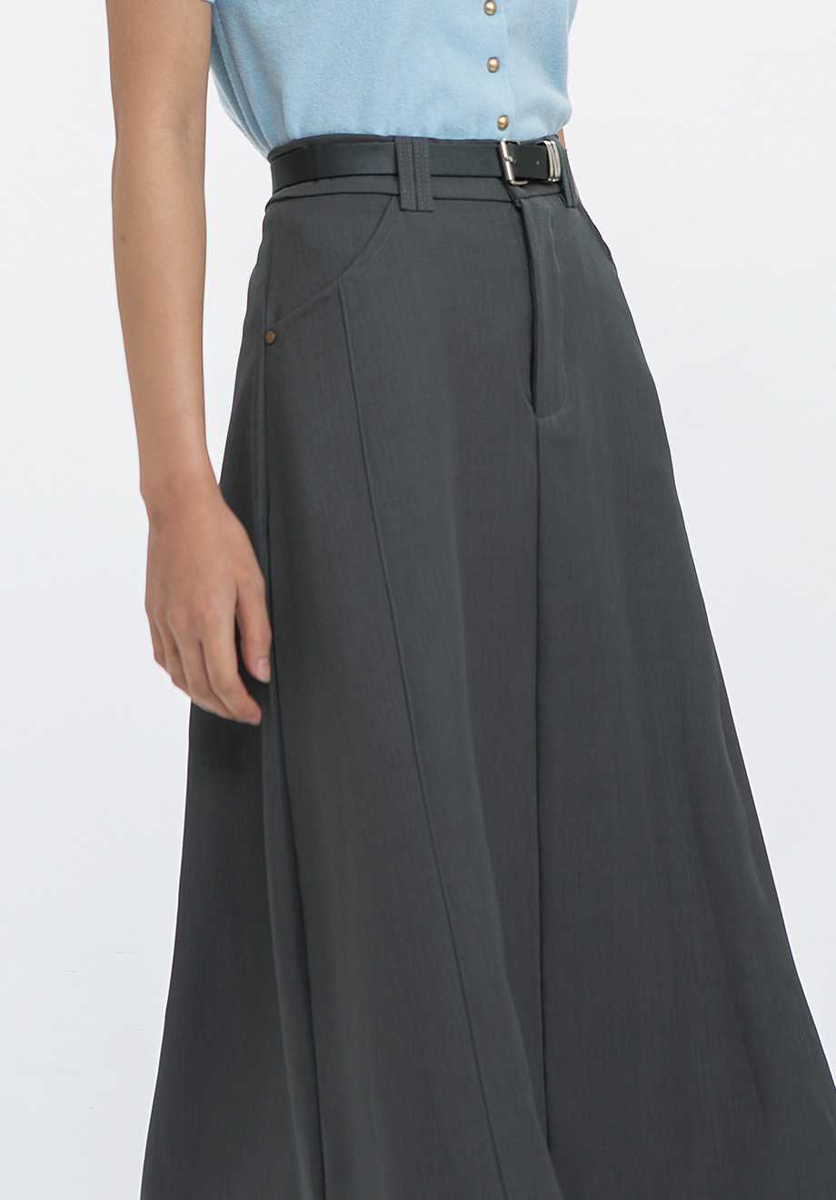 - Concealed front zipper & button for closure