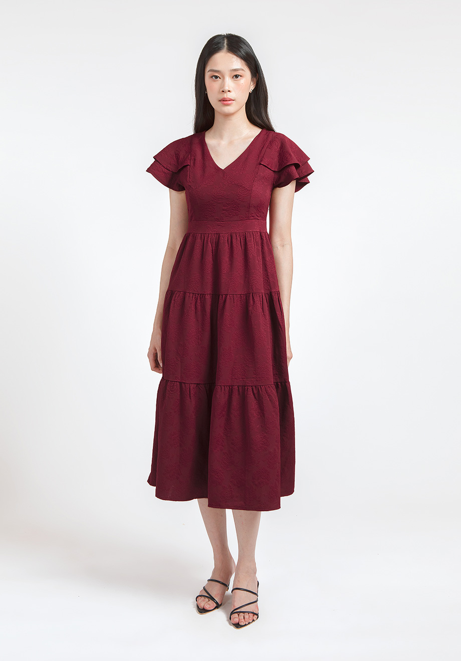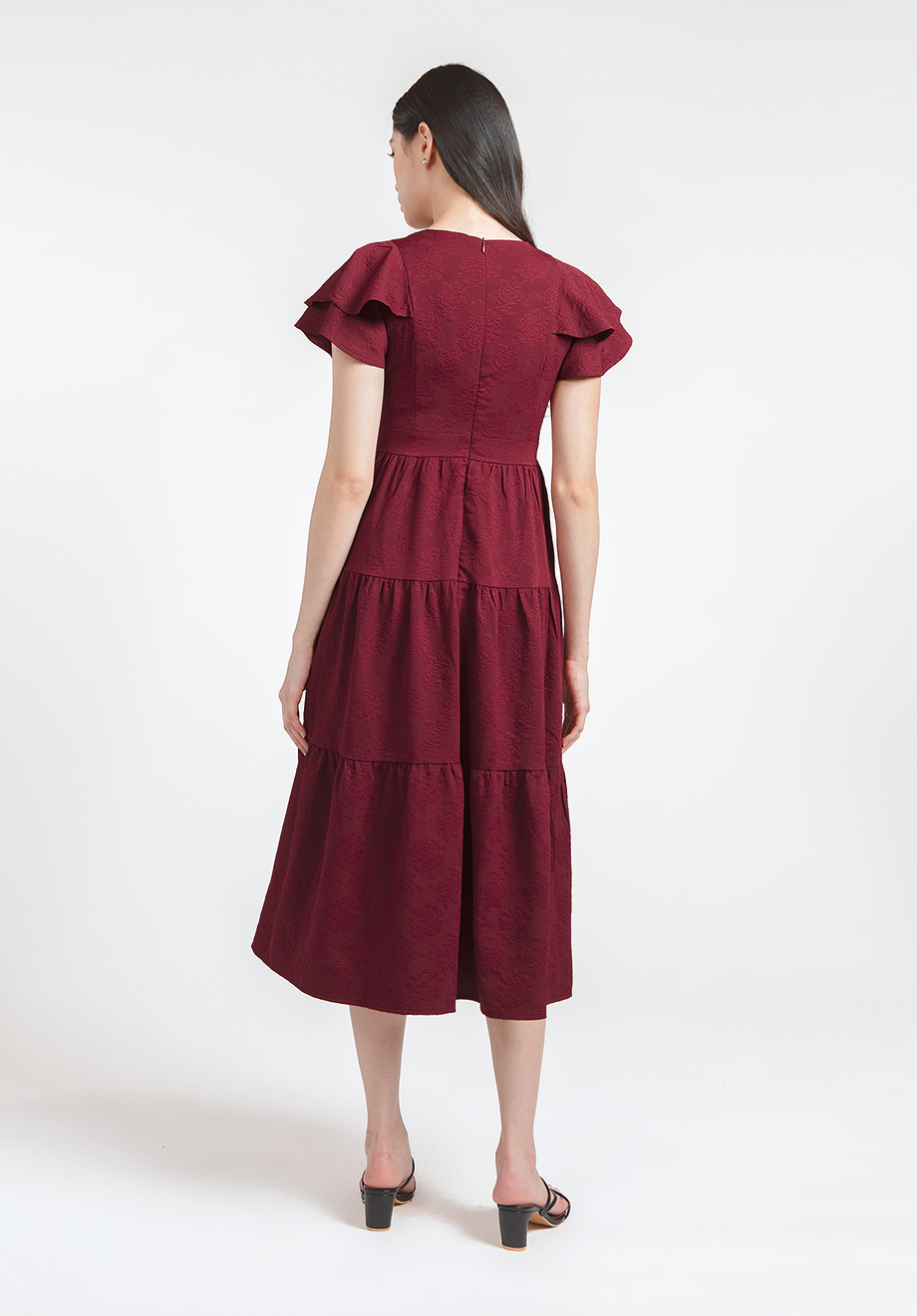 - Concealed back zipper for closure