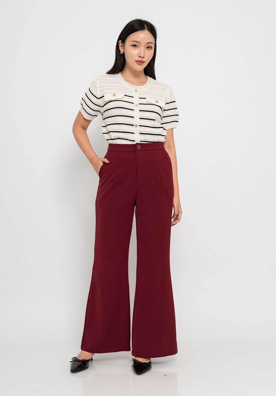 - Concealed front zipper & button for closure