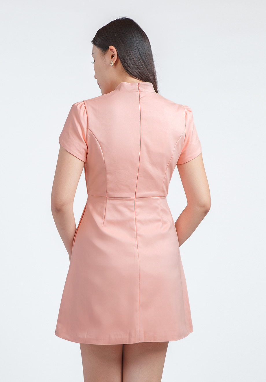 - Concealed back zipper for closure