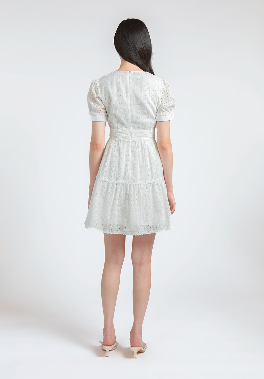 - Concealed back zipper for closure