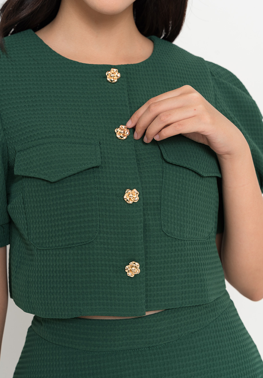 - Front buttons for closure