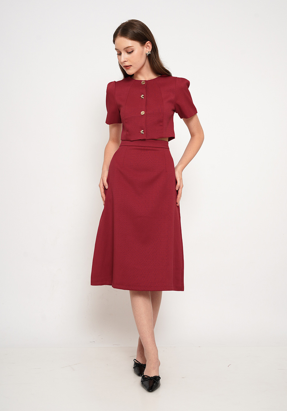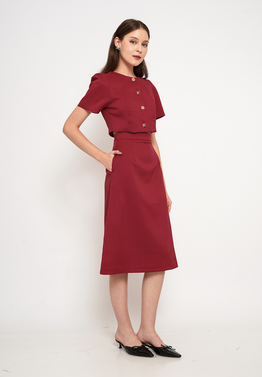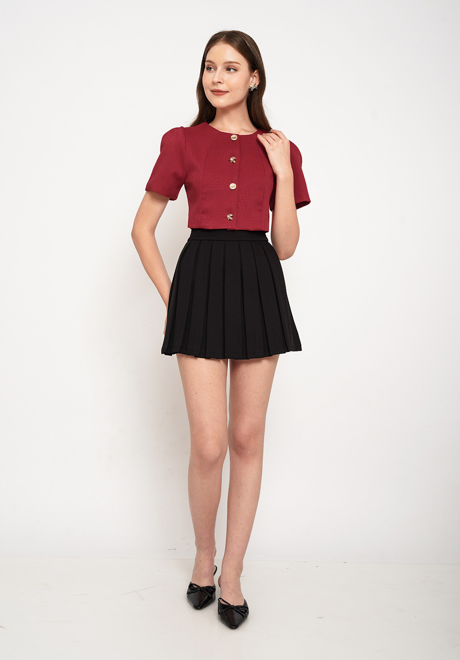 Model is 174 cm; weight: 50 kg & wears Small size