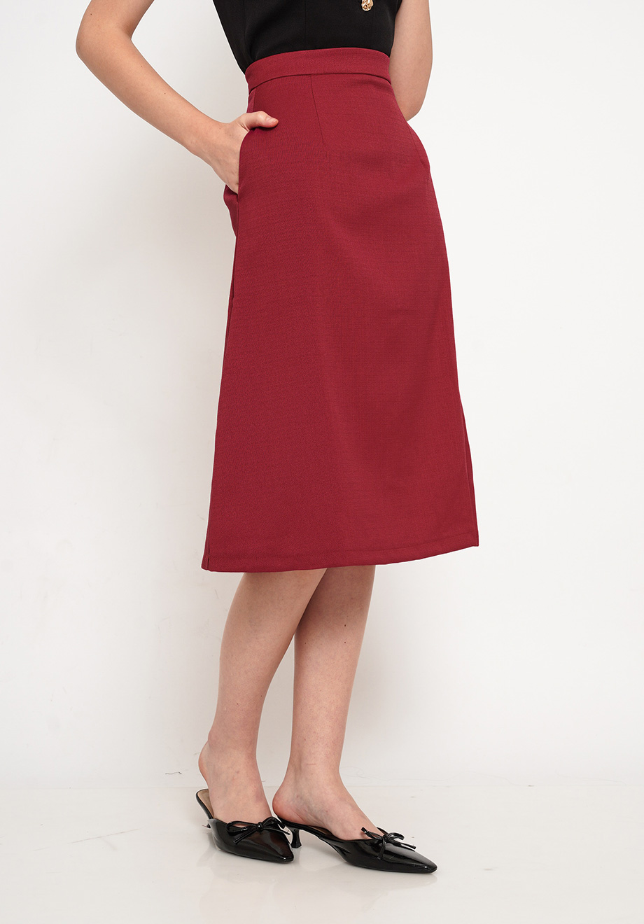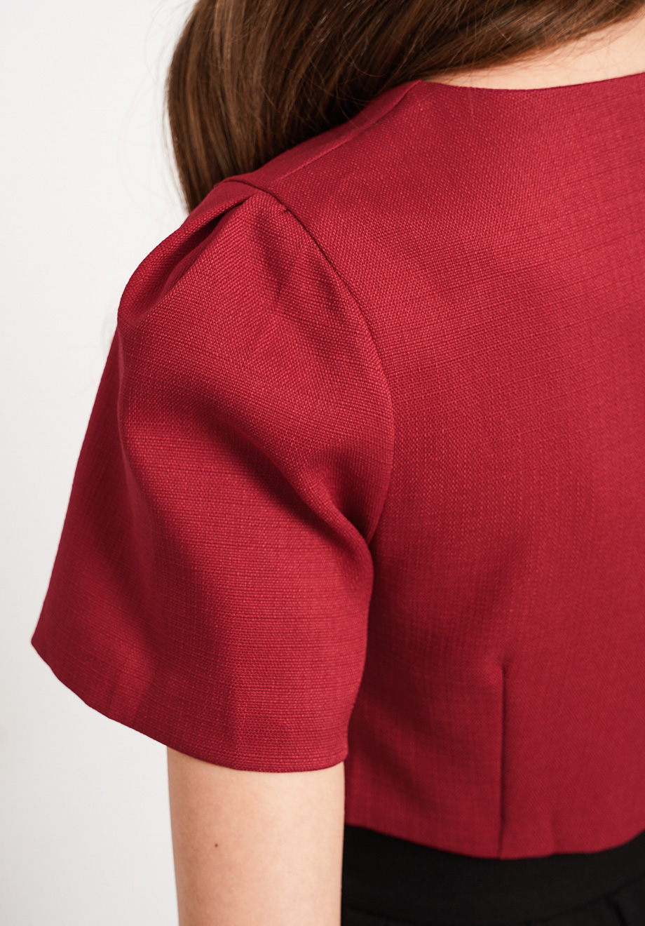 - Concealed back zipper for closure