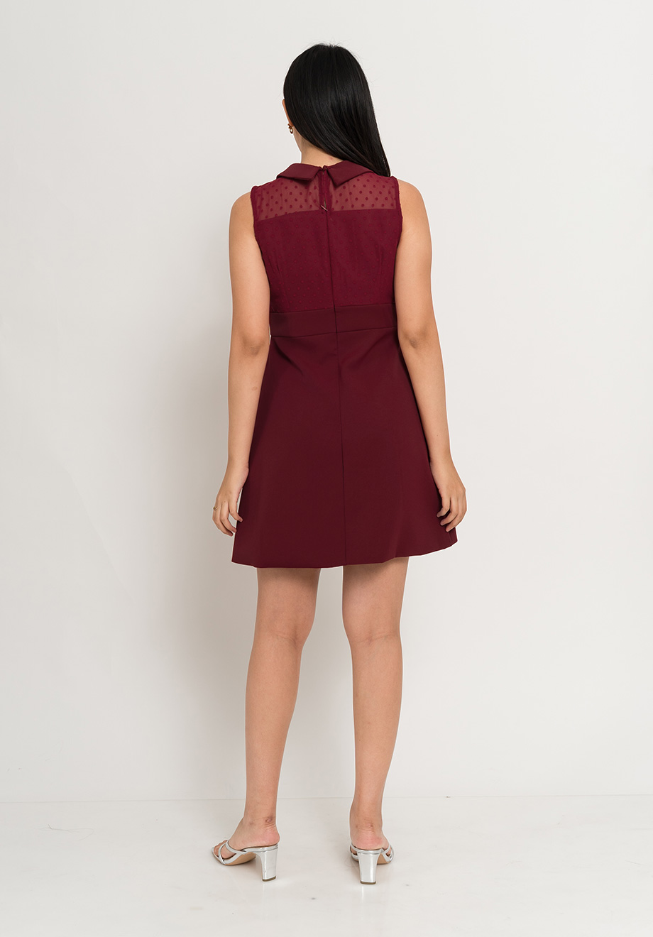 - Concealed back zipper & button for closure
